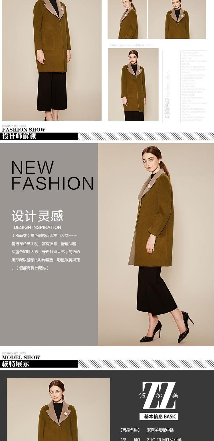 佐尔美新品冬季女装双面羊毛呢大衣女款大码修身中长款E64SM12