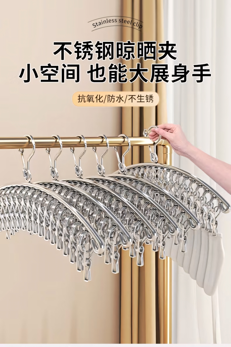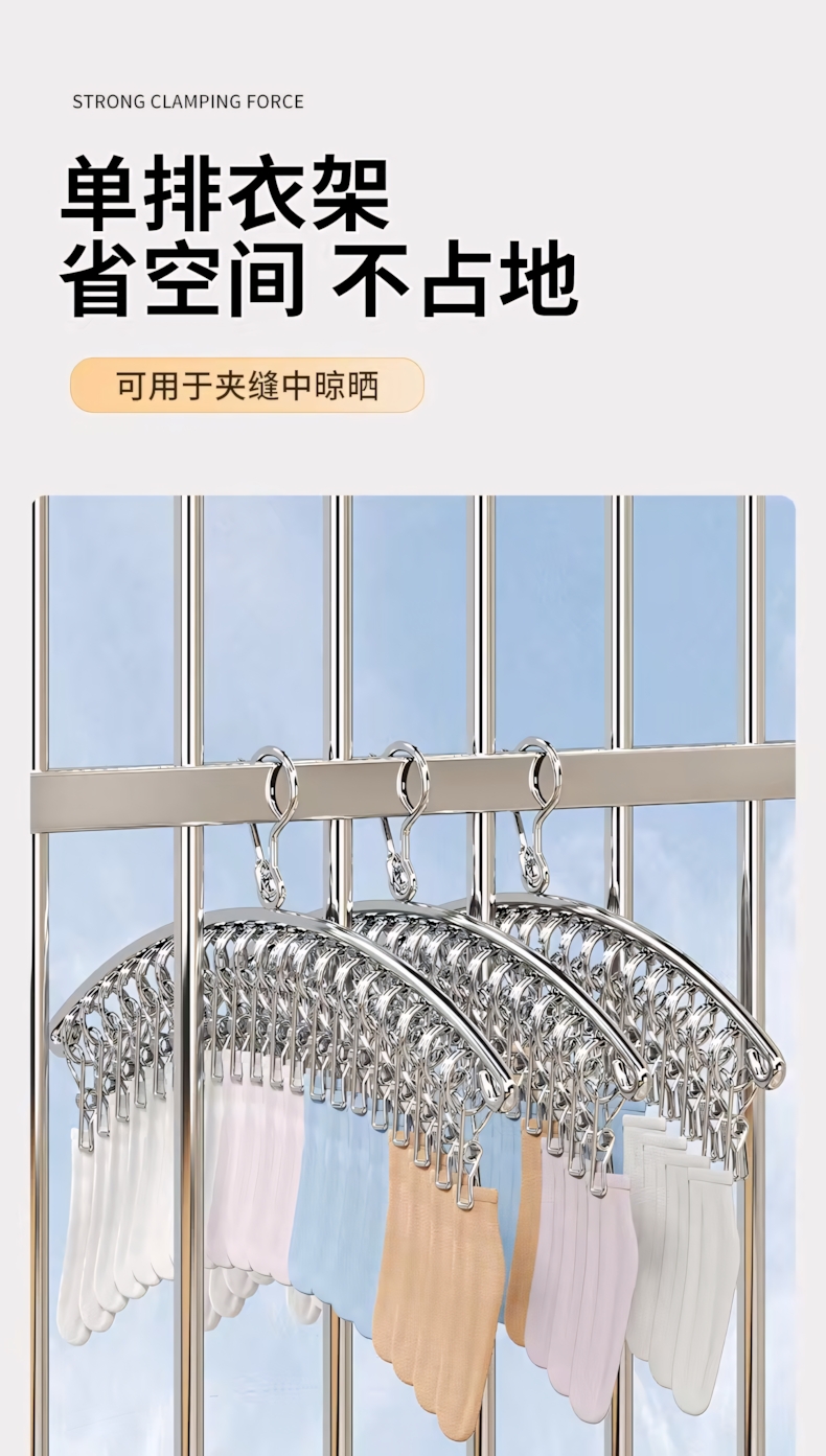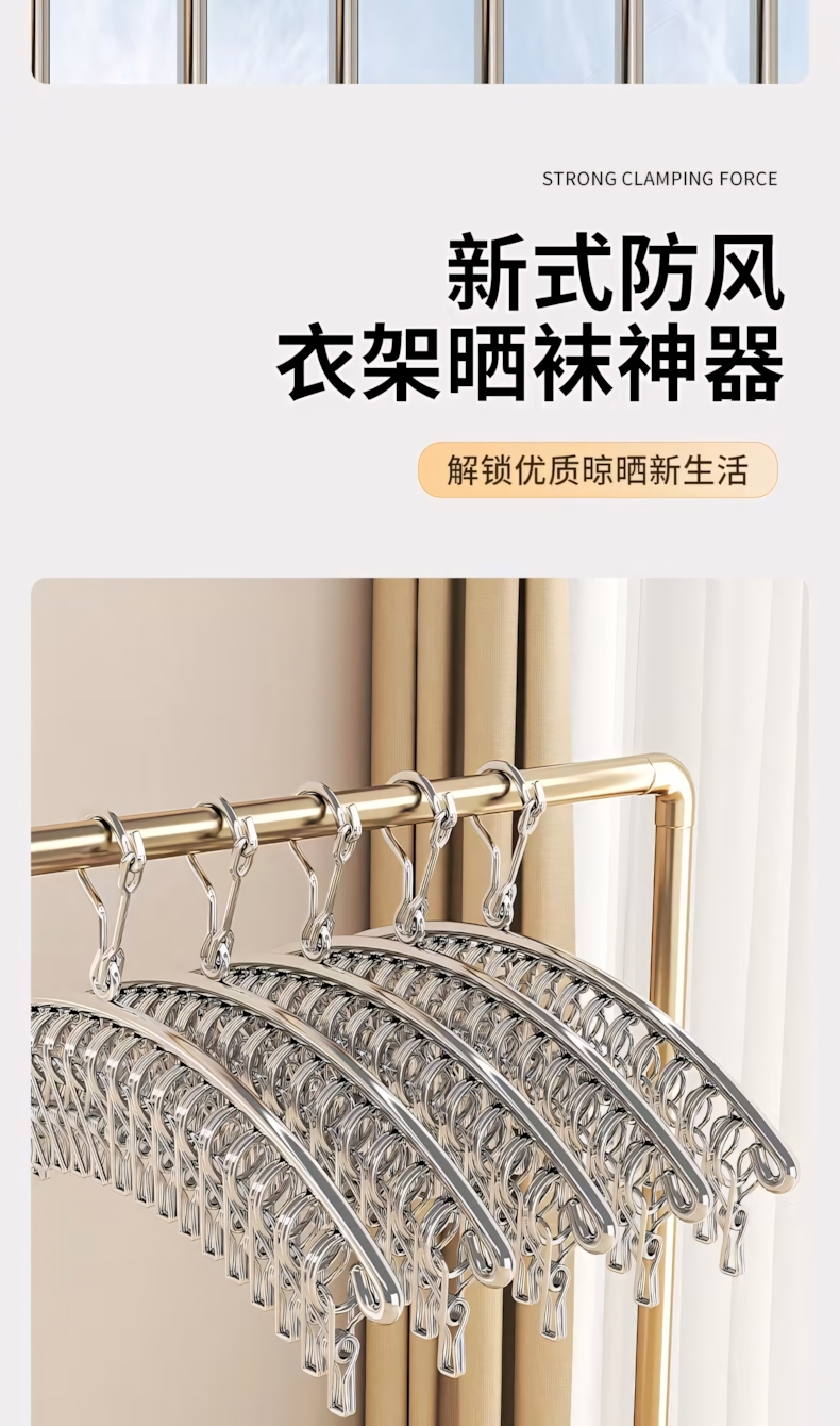 【防风钩设计风吹不落地❗️超强夹力晾晒不掉】不锈钢袜子夹防风无痕家用多功能阳台多夹子晒袜子神器晾内裤衣架。jb