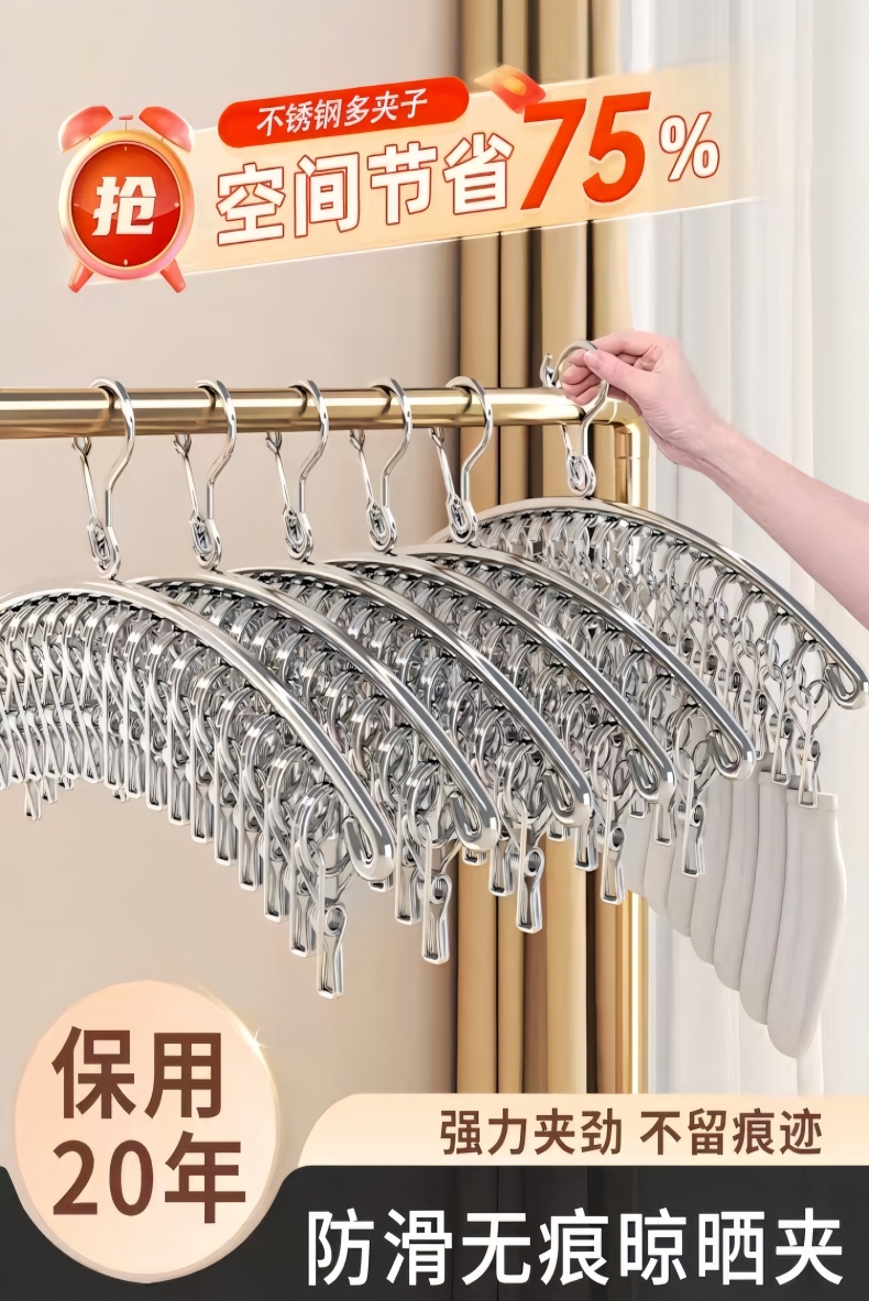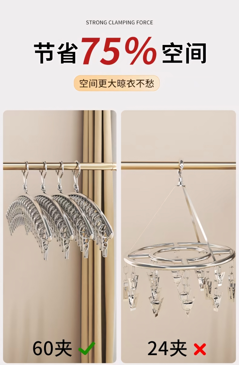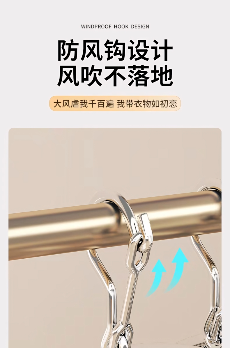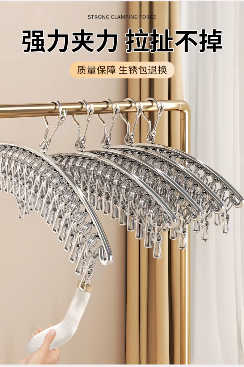 【防风钩设计风吹不落地❗️超强夹力晾晒不掉】不锈钢袜子夹防风无痕家用多功能阳台多夹子晒袜子神器晾内裤衣架。jb