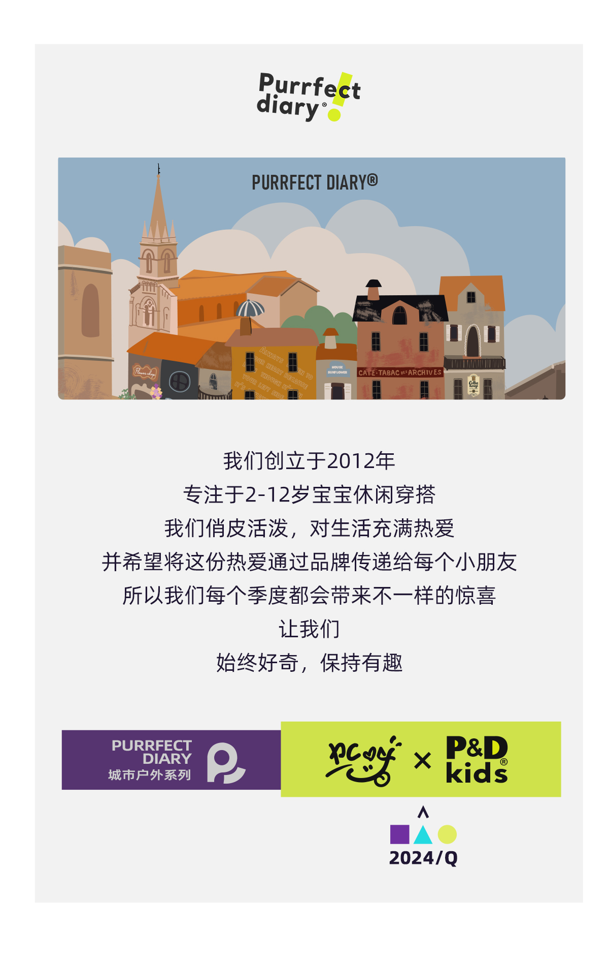 Purrfect-Diary专注于贴近自然随性的穿着概念,轻奢平价的童装文化传播,在产品设计上更加注重婴童穿着的舒适性、安全性、更出众的国际化品牌,将欧美的育婴文化在中国进行深入的传播与推广。