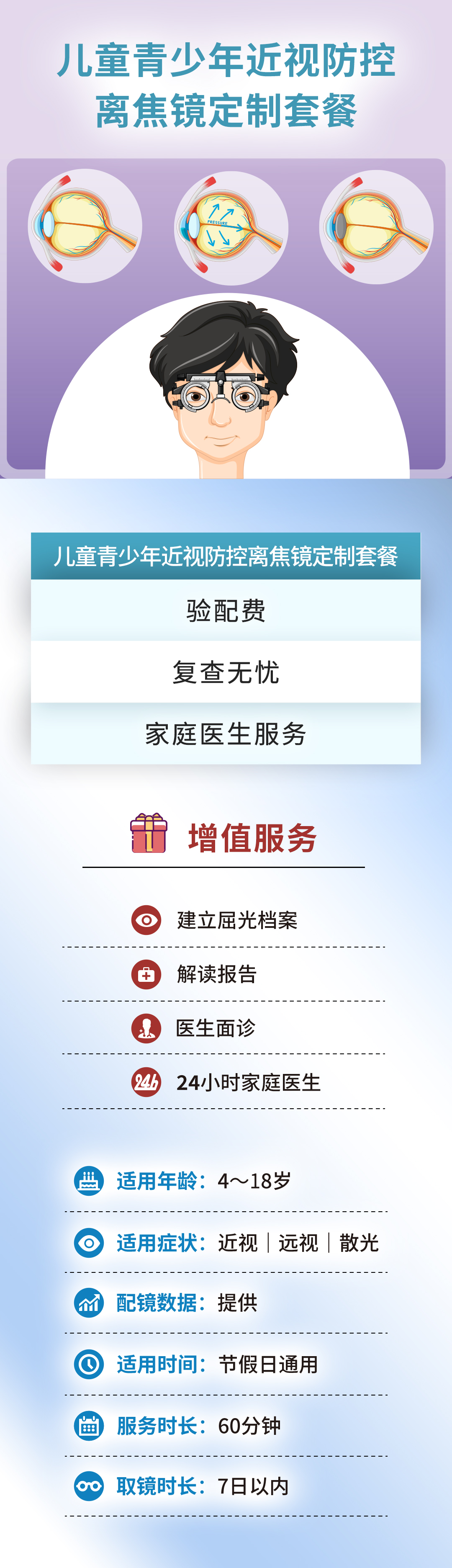 儿童青少年近视防控离焦镜定制套餐(价格根据所选型号有不同调整)