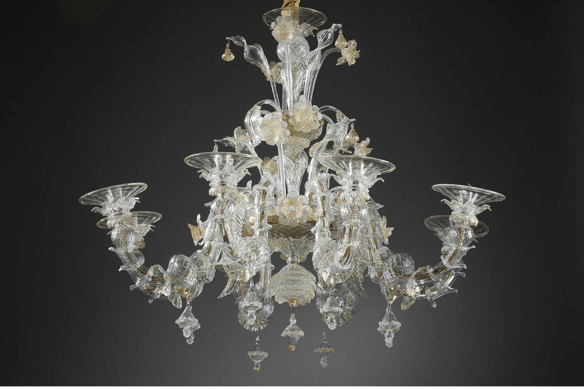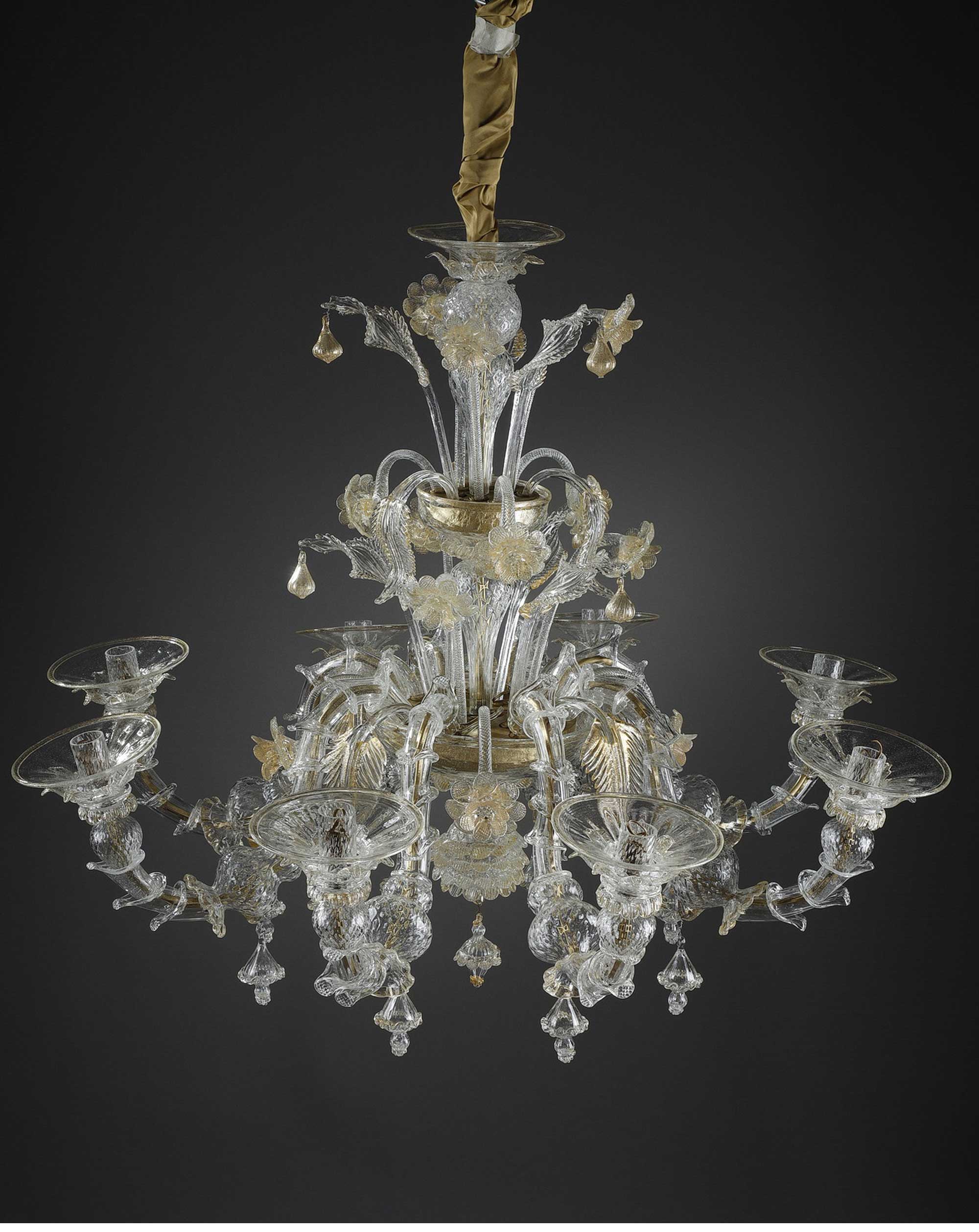 1900年代意大利威尼斯水晶工坊出品玻璃点金工艺修饰花叶主题八枝头烛台式枝形吊灯