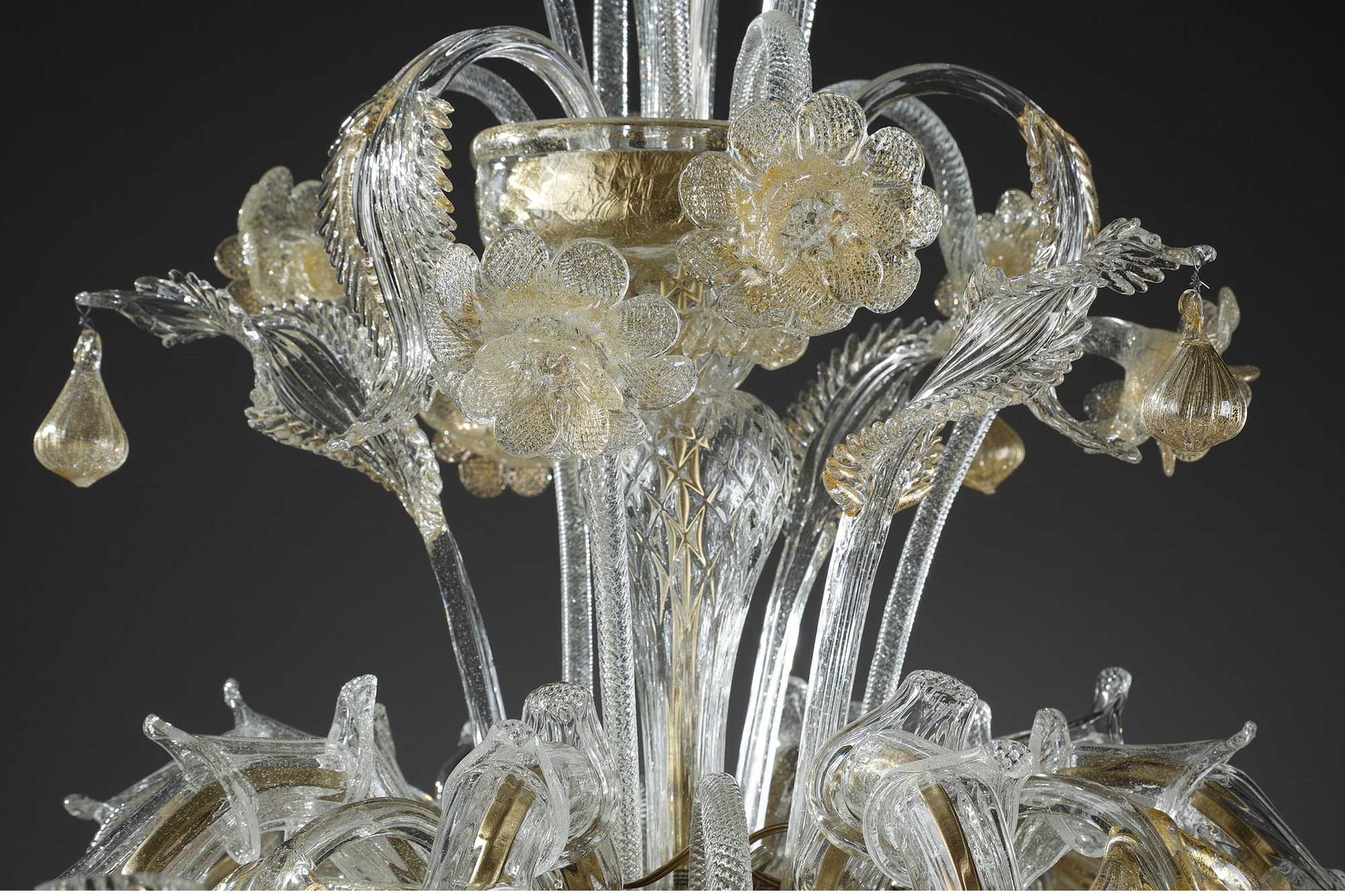独角鹿西洋古董 1900年代意大利威尼斯穆拉诺水晶工坊出品玻璃点金工艺修饰花叶主题八枝头烛台式枝形吊灯