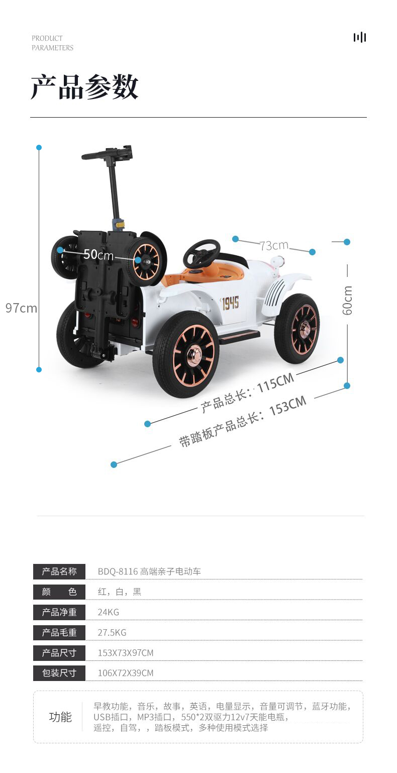 【新款上市!亲子共乘,结实耐用!】贝多奇儿童电动车四轮遥控汽车玩具车可坐人双人亲子大人小孩一体
