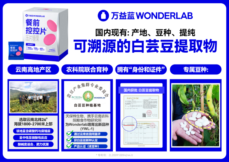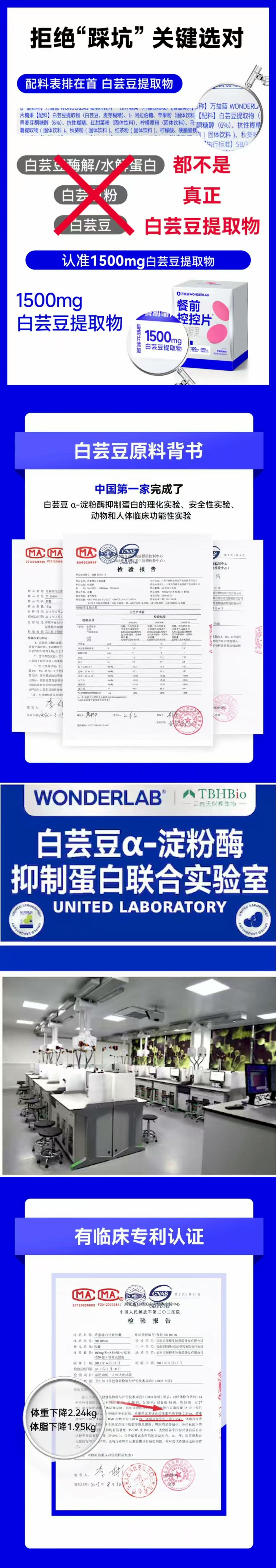 万益蓝wonderlab采用大号四角白芸豆,比普通两角白芸豆抓取力更强,能抓住更多淀粉