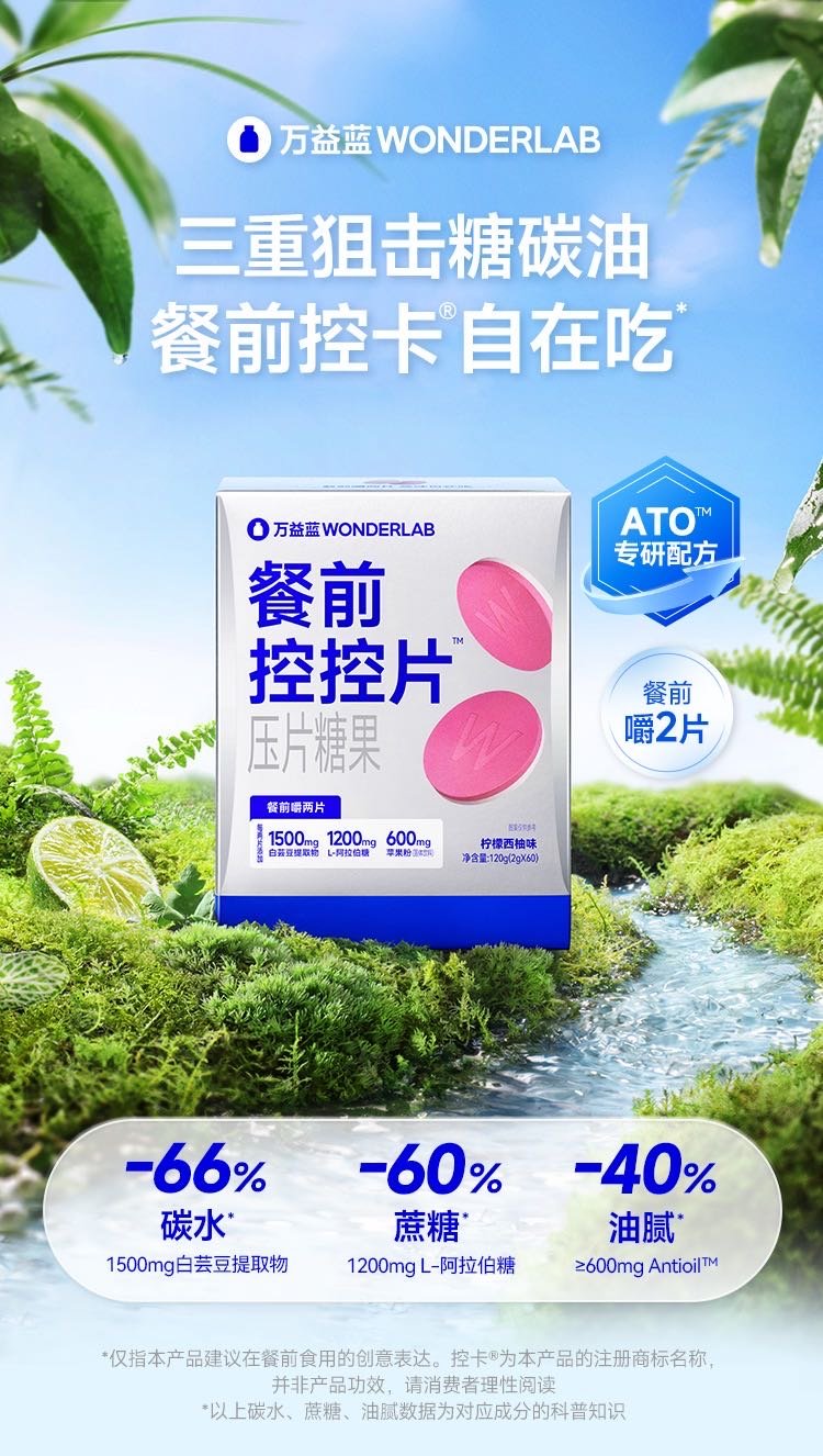 万益蓝WonderLab餐前控控片重磅新品❗️挡住糖碳油,年前加速身材管理🔺健康减重得做减法!减油减糖低卡控体重