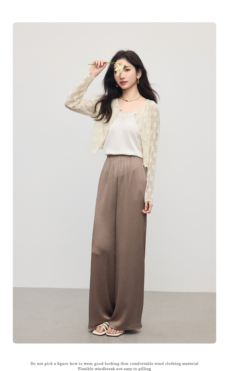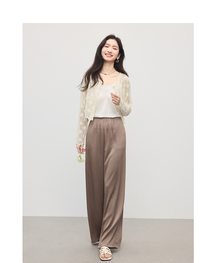 【专属特价】熙世界米杏色肌理针织阔腿裤2025秋新款垂感窄版直筒休闲裤子