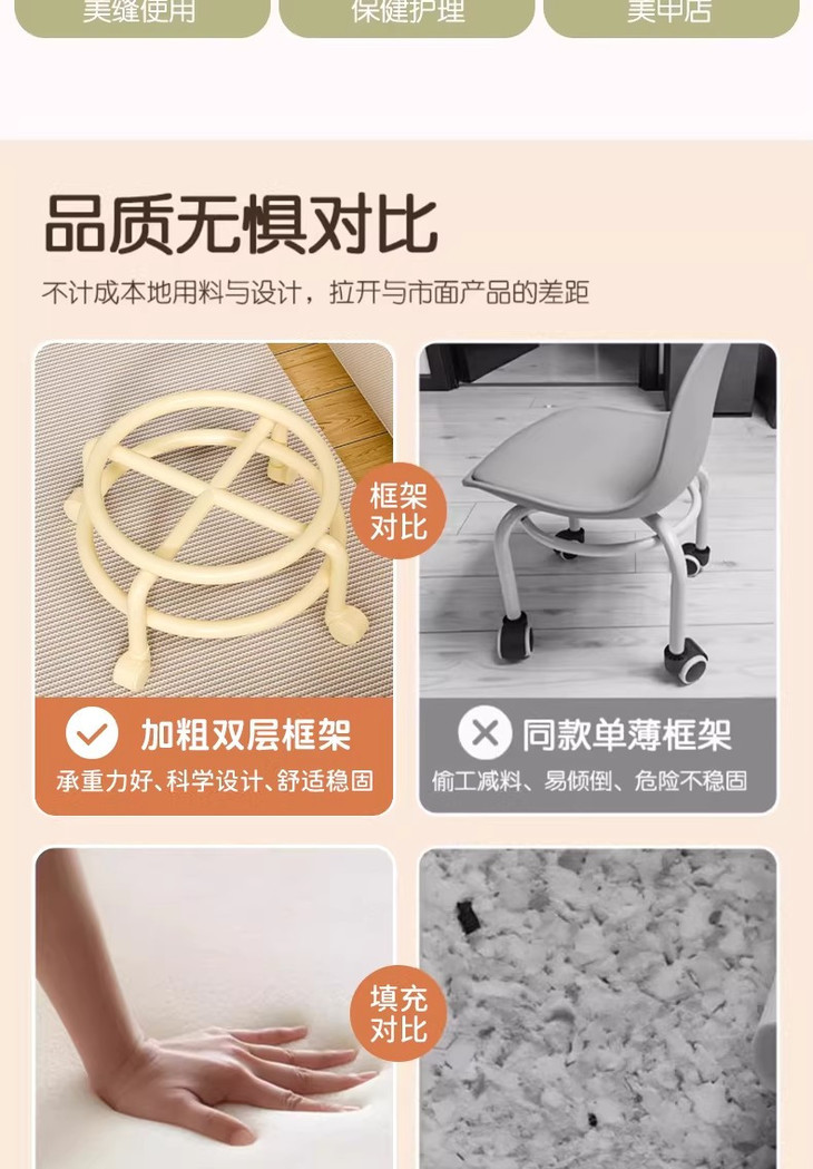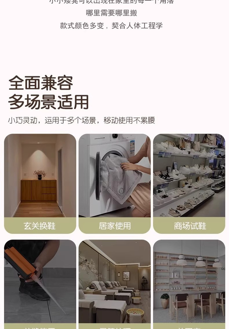 🏠多场景通用,真·哪里需要哪里搬 ✔️ 玄关换鞋 ✔️ 居家美缝/擦地 ✔️ 美甲店/保健护理 ✔️ 商场试鞋 ✔️ 拆快递/整理低柜 小巧灵动,移动不累腰,家里有它,幸福感直接拉满~
