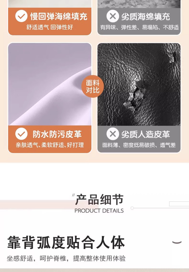 ✅🧽慢回弹海绵+防水皮革,好打理又透气 💺靠背工学弧度,护腰久坐不累 🎨多巴胺色系,好看又治愈 ✅两款多巴胺颜色可选 放家里就是一个小亮点✨ 拍照也出片,出租屋瞬间有灵魂~