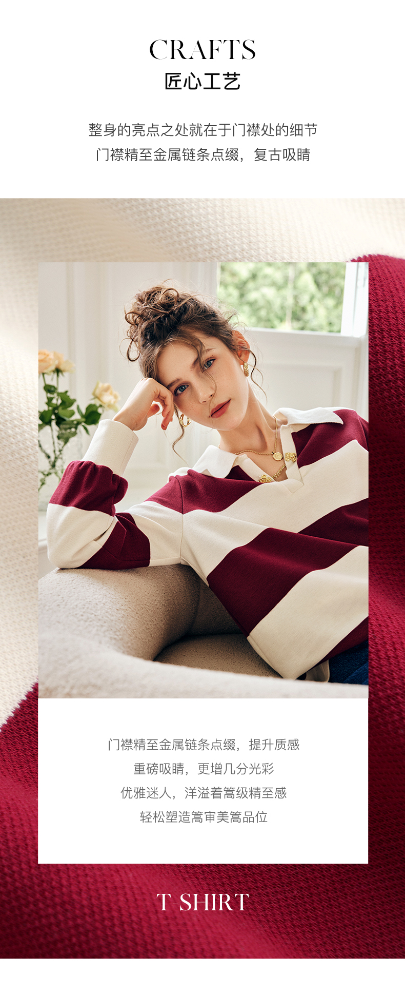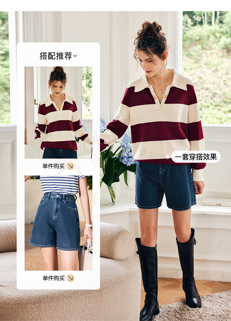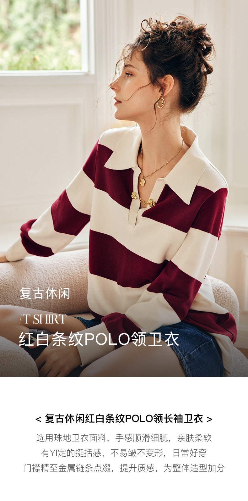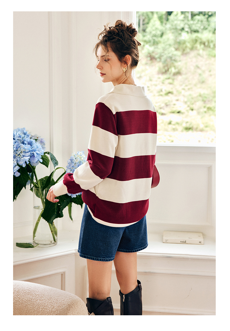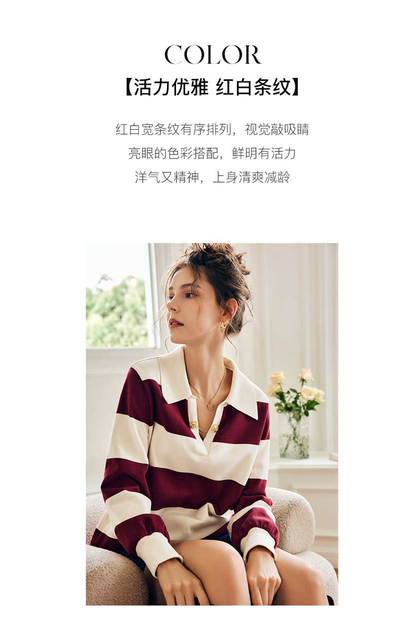 OLrain欧芮儿法式条纹卫衣女秋季2022新款宽松复古polo领长袖上衣