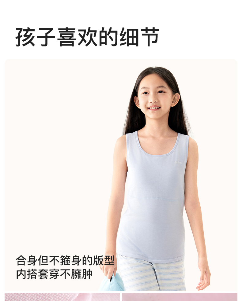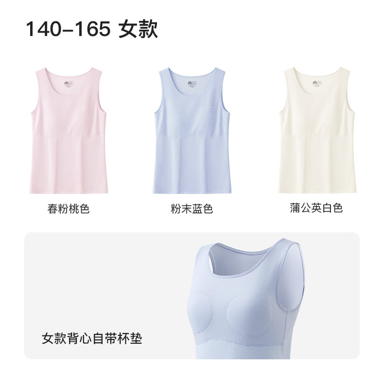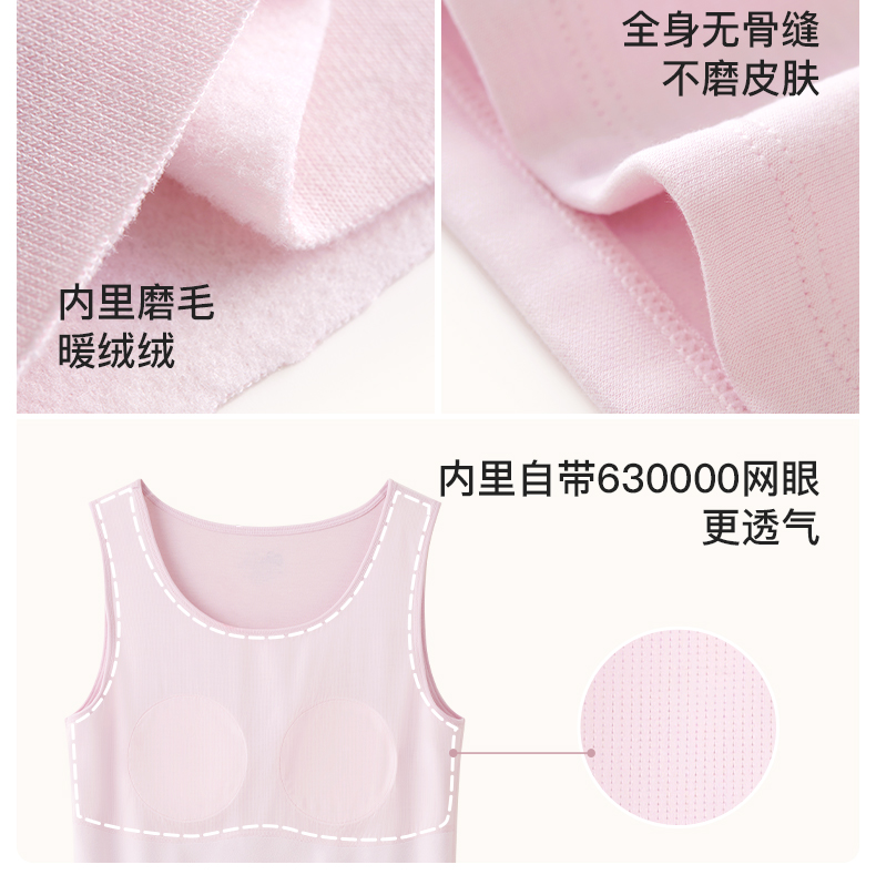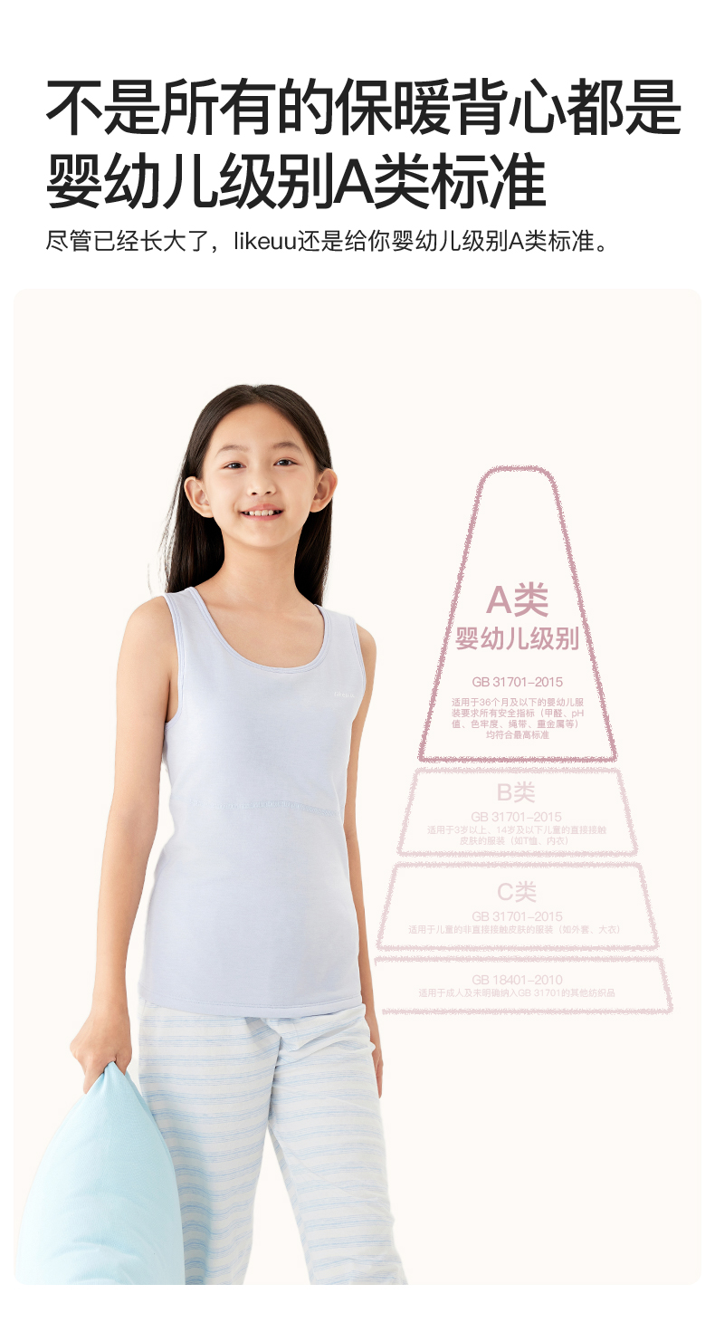 likeuu女童保暖背心吸湿排汗透气秋冬带杯垫抗菌儿童A类dr