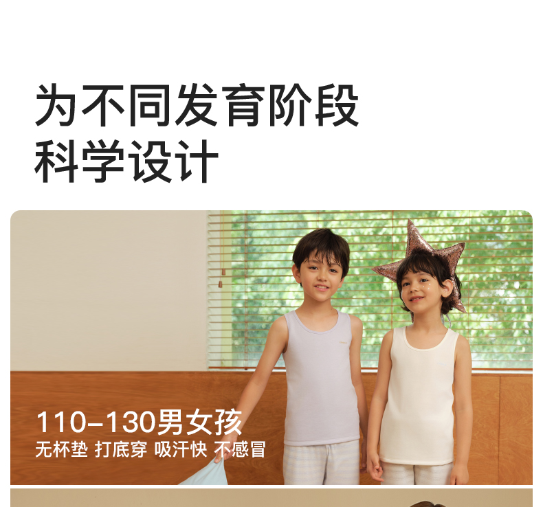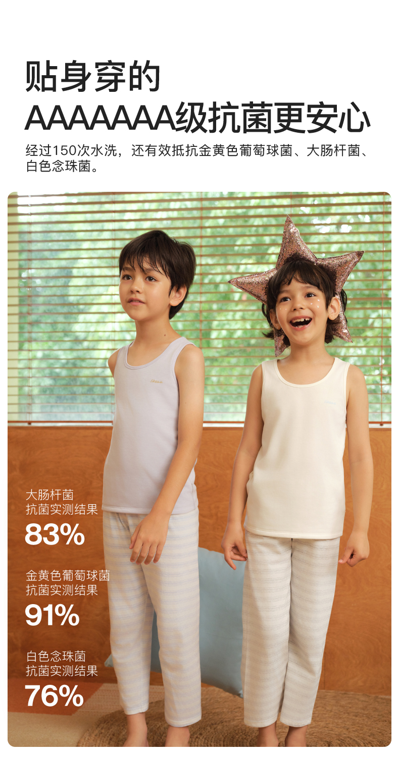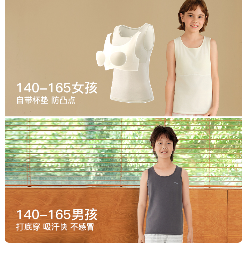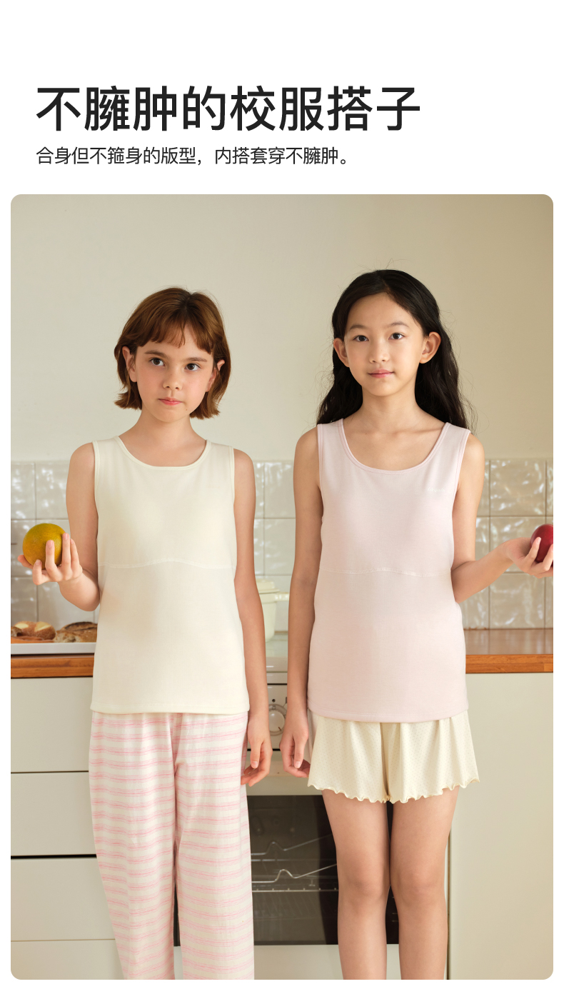likeuu女童保暖背心吸湿排汗透气秋冬带杯垫抗菌儿童A类dr