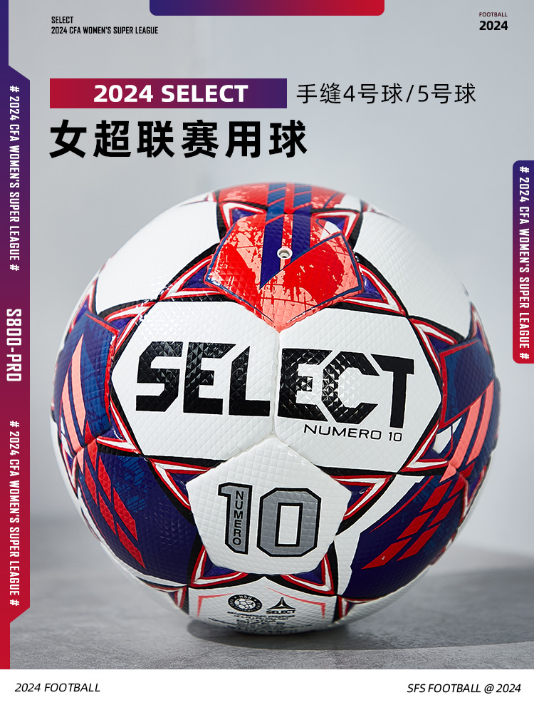 SFS正品 SELECT足球正品女超联赛CFA女足比赛用S800FIFA认证5号手缝N10