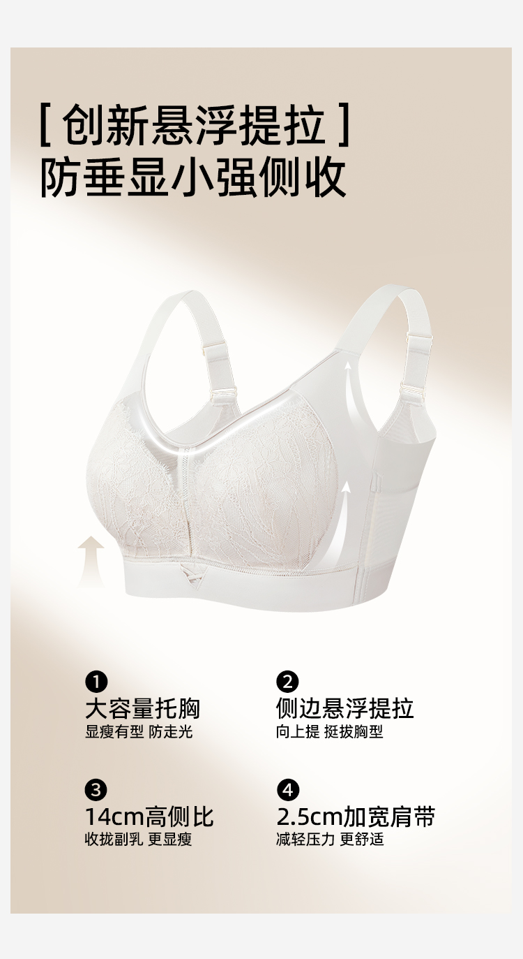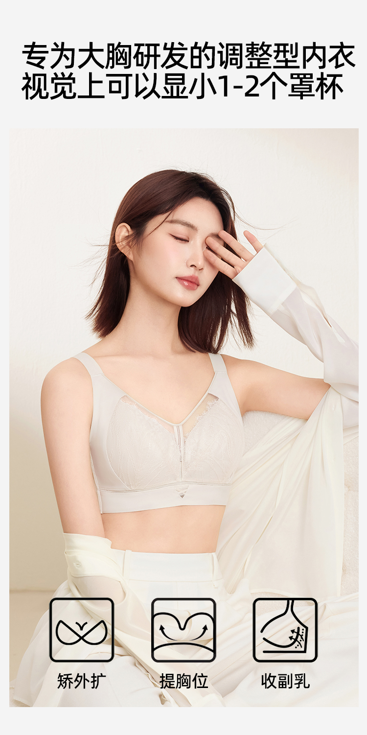 熳洁儿 大胸显小文胸调整型CD杯轻薄洞洞杯反重力提拉收副乳25251505