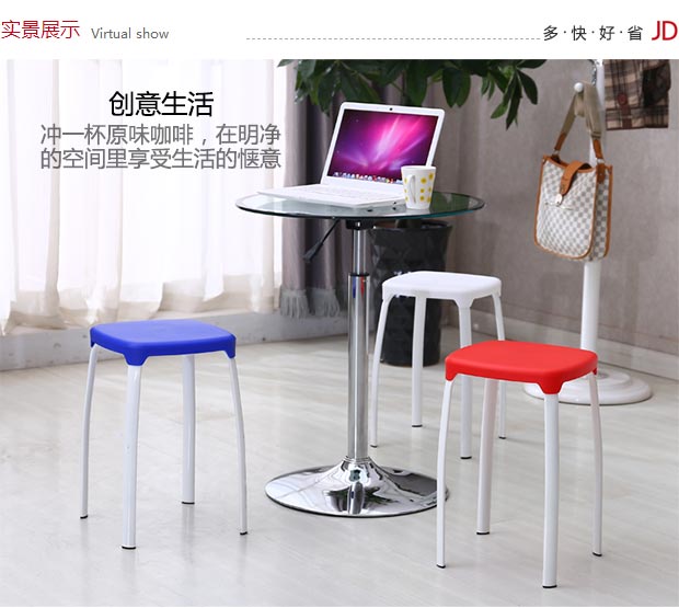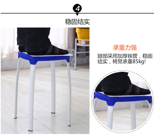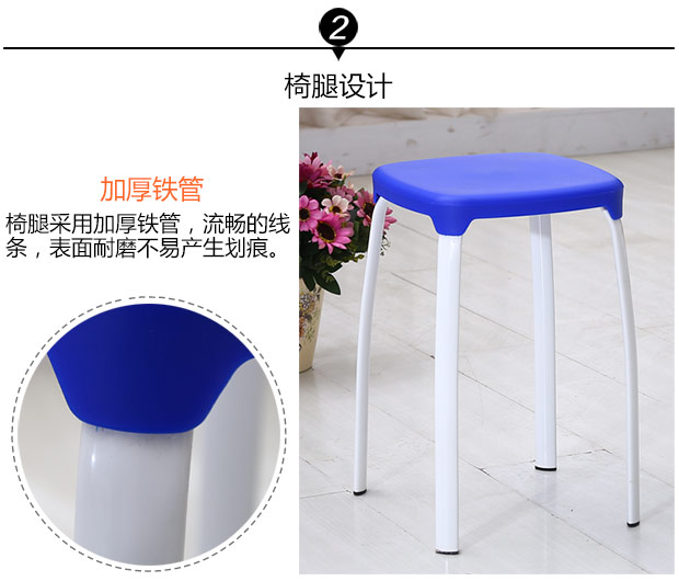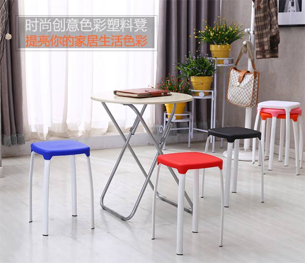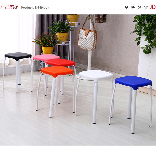 华恺之星 凳子椅子休闲时尚彩色换鞋凳加厚塑料凳子矮凳 蓝色