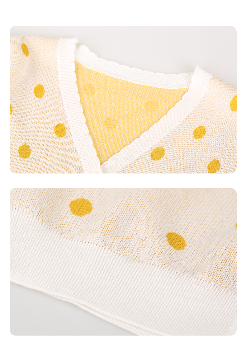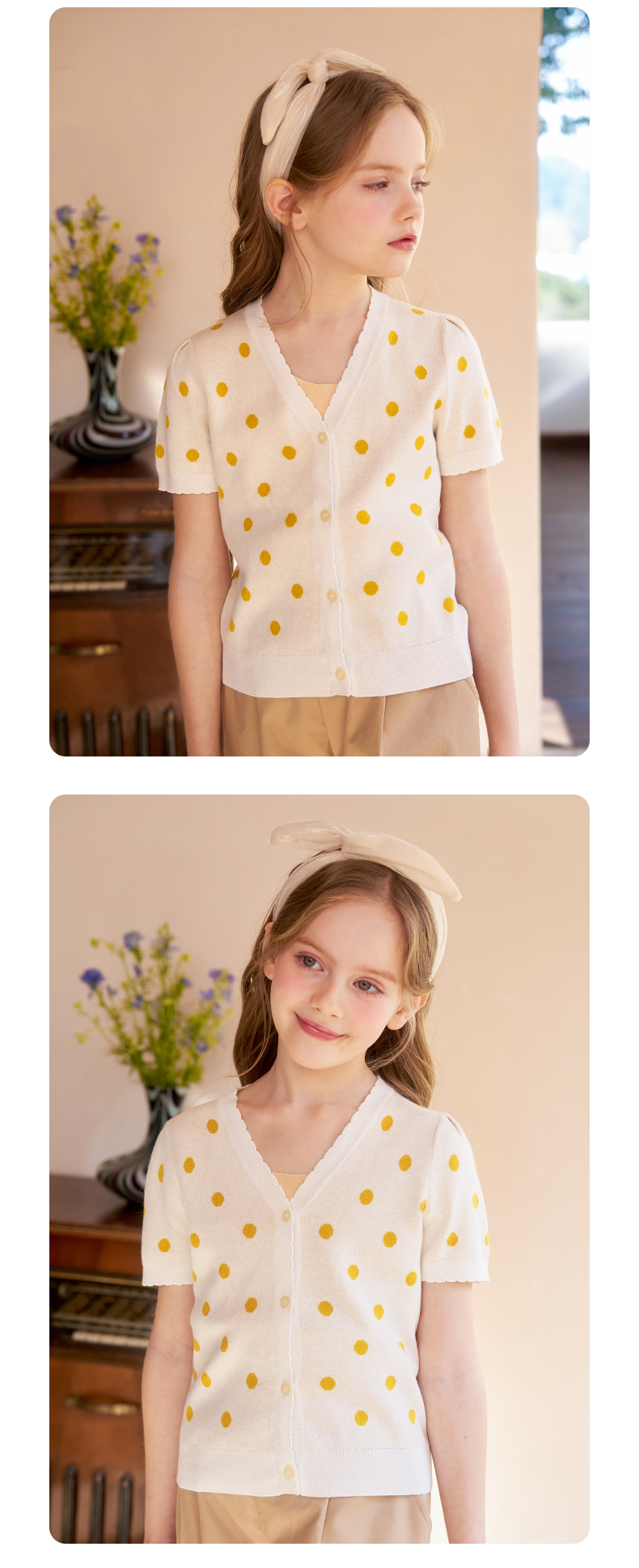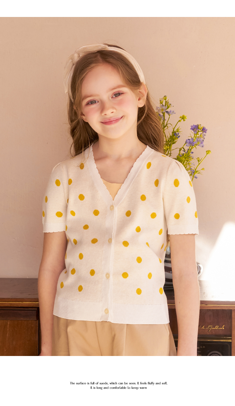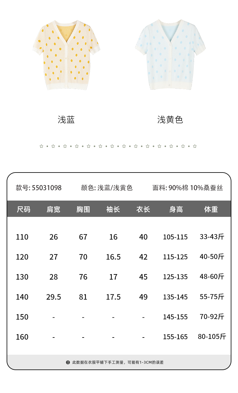 mettekids女童短袖t恤儿童新款圆点针织衫童装中大童V领洋气上衣