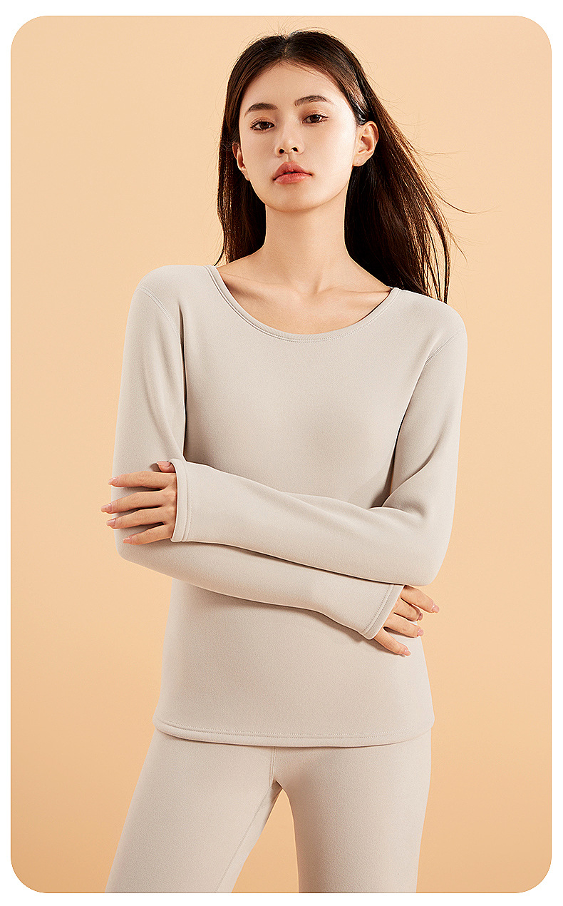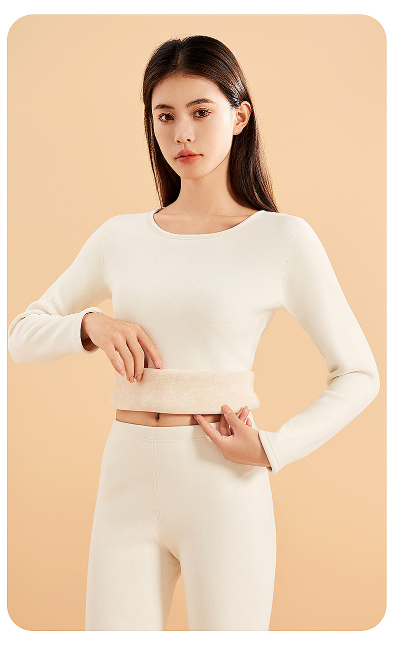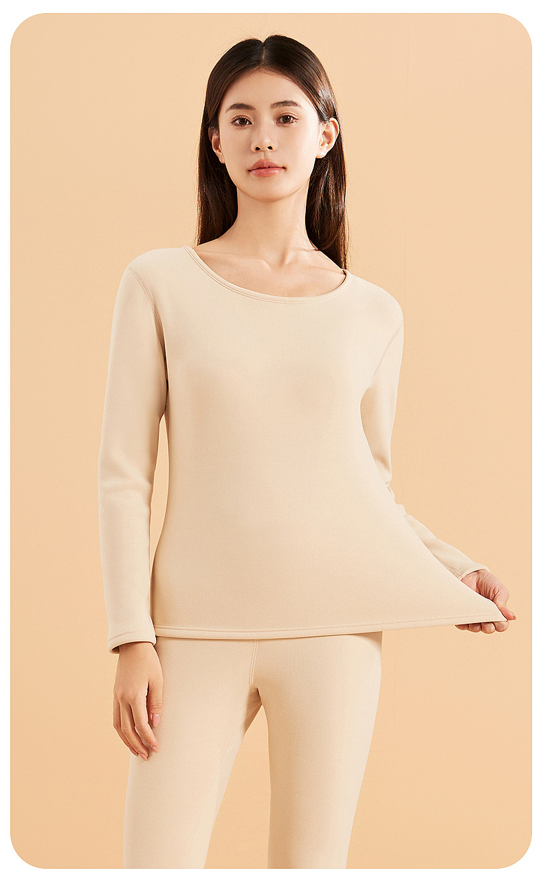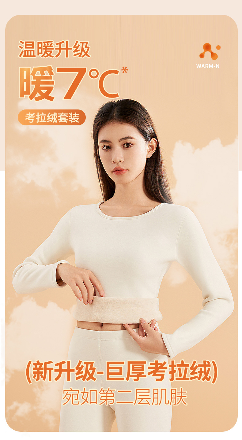 【桃内秋冬新品 巨厚考拉绒来袭!】升10°C 黑科技研制!巨保暖!女士保暖套装 羊毛蚕丝女士加绒加厚圆领(货号:K-709)