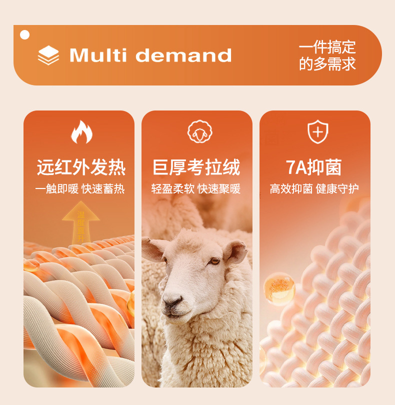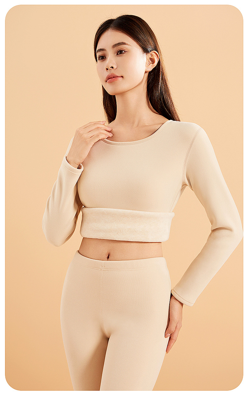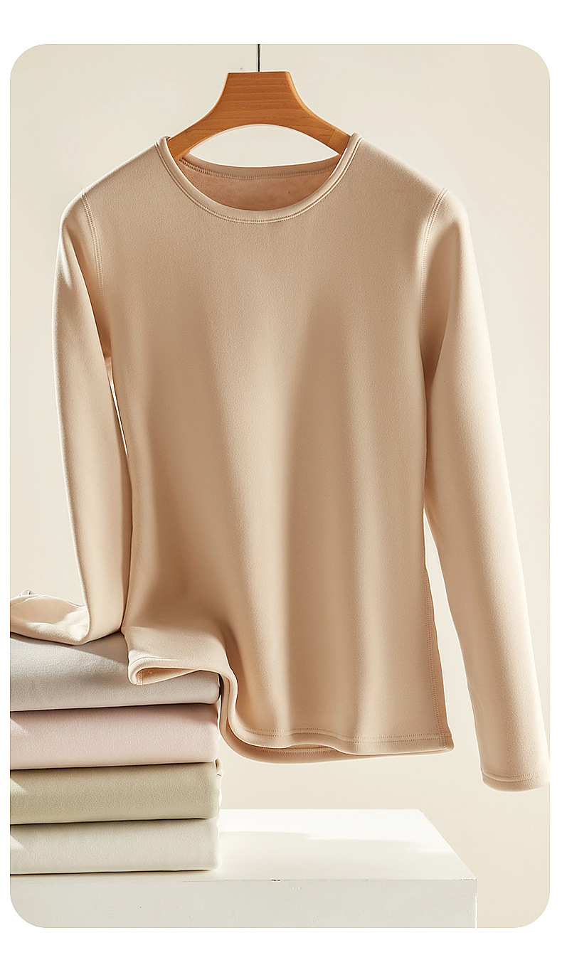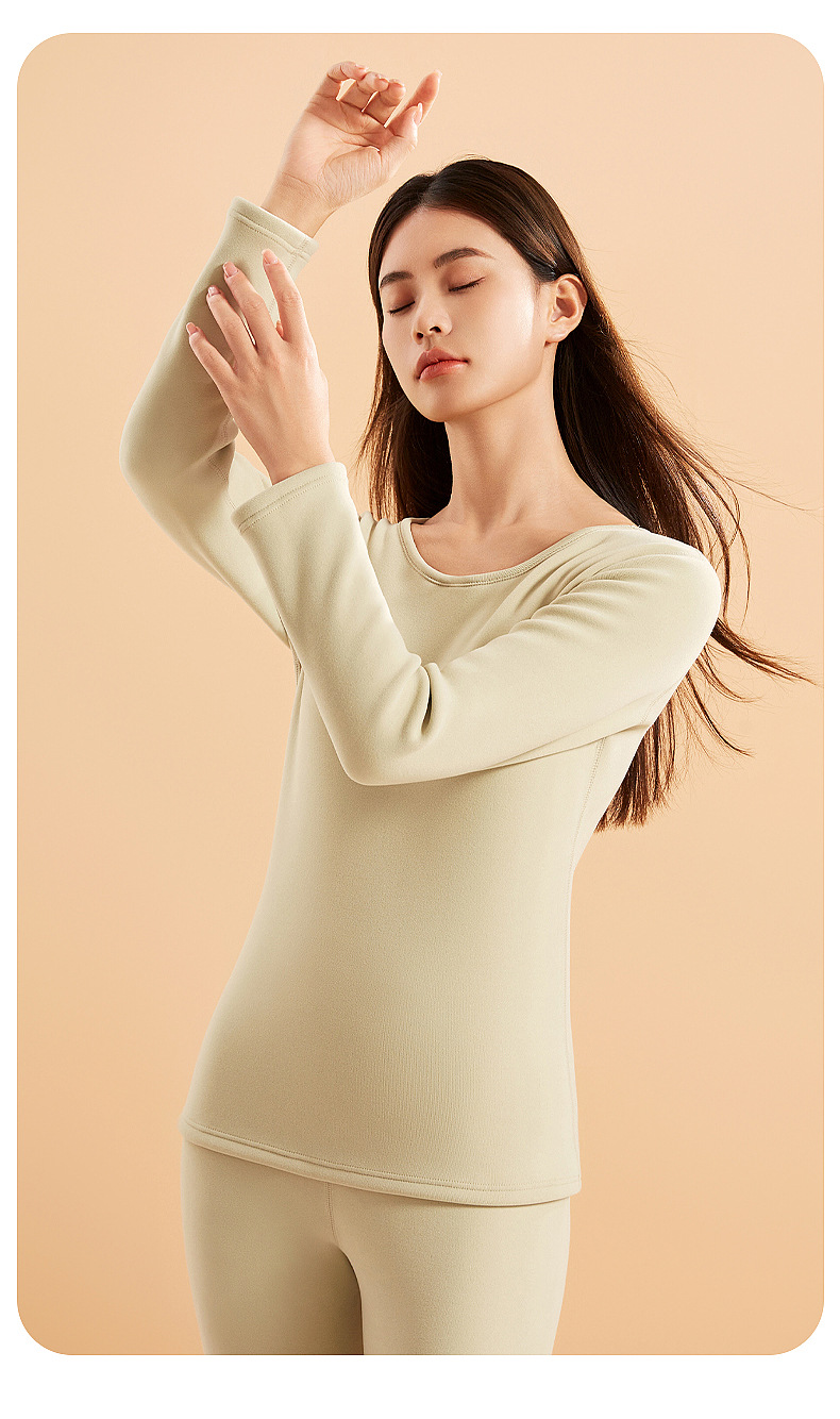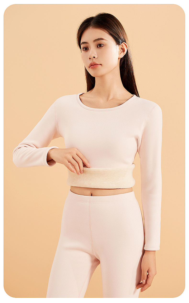 【桃内秋冬新品 巨厚考拉绒来袭!】升10°C 黑科技研制!巨保暖!女士保暖套装 羊毛蚕丝女士加绒加厚圆领(货号:K-709)