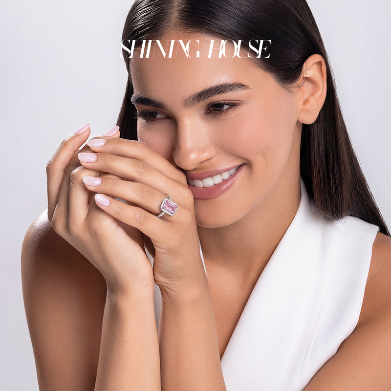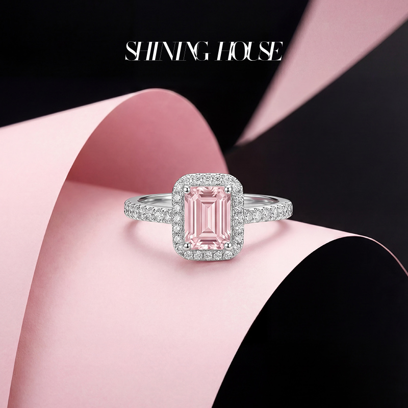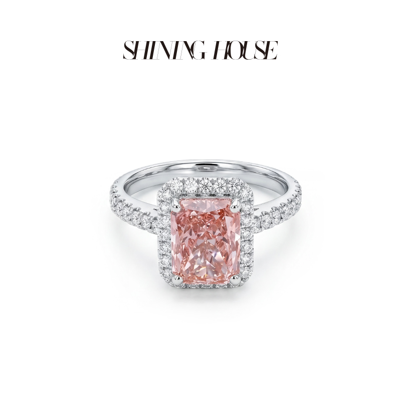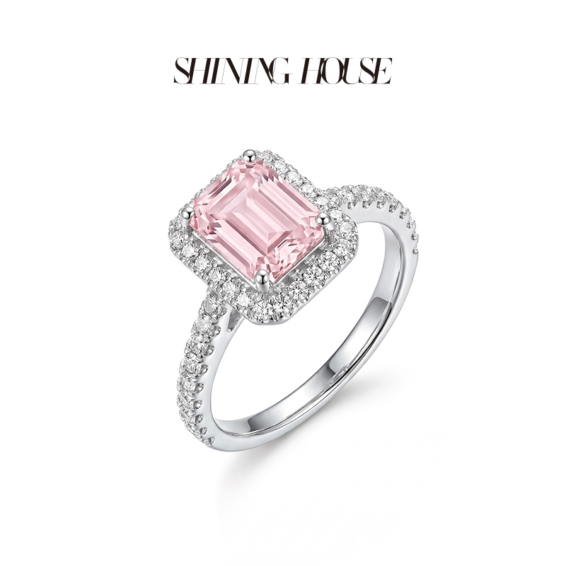 ShiningHouse[培育] 粉钻系列 18k金钻石戒指 粉钻雷迪恩形2克拉钻人工真钻人造钻石K金戒指时尚钻石女戒悦己送礼臻选【此商品不支持7天无理由退货退款】预计3日发货