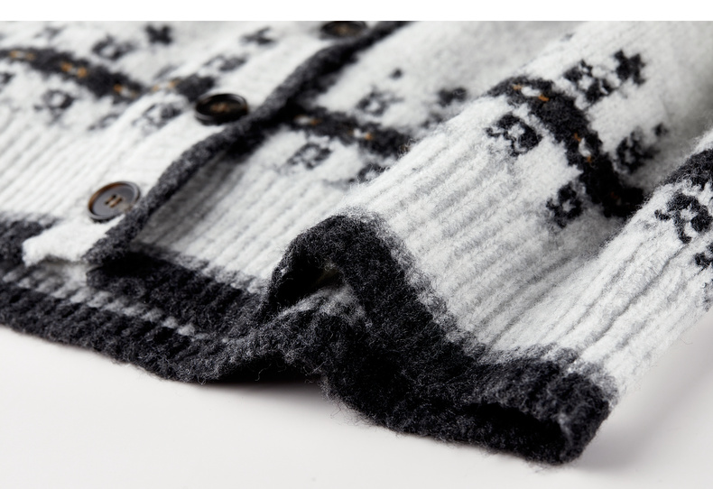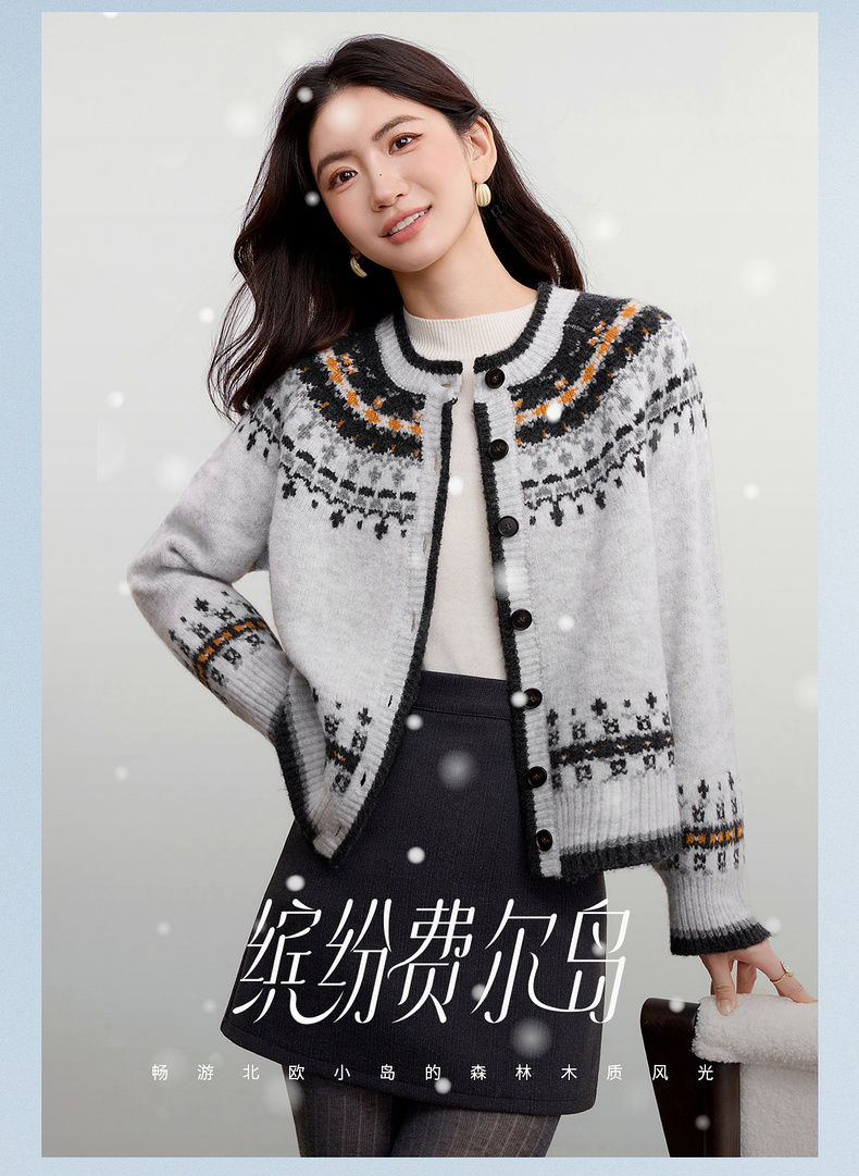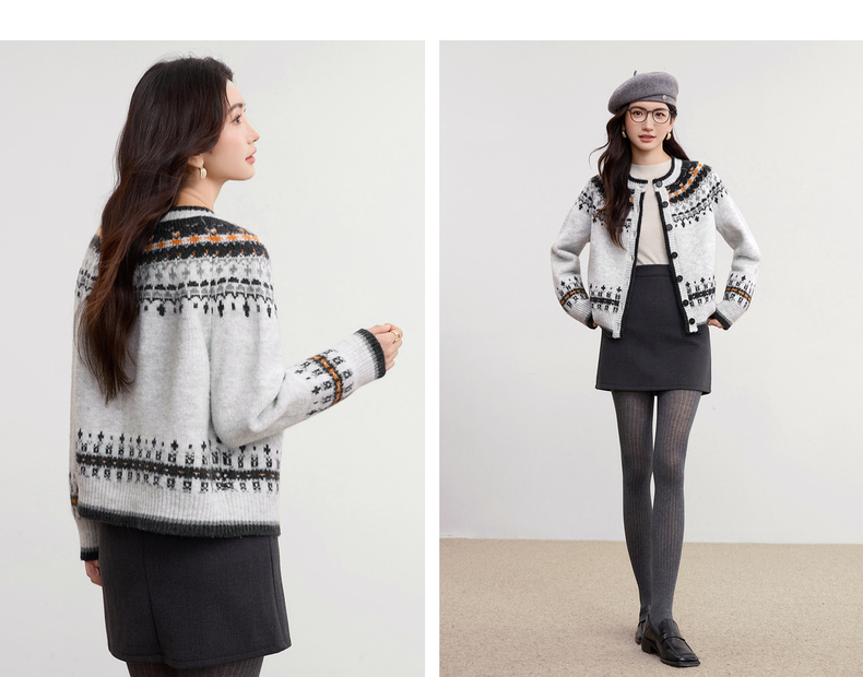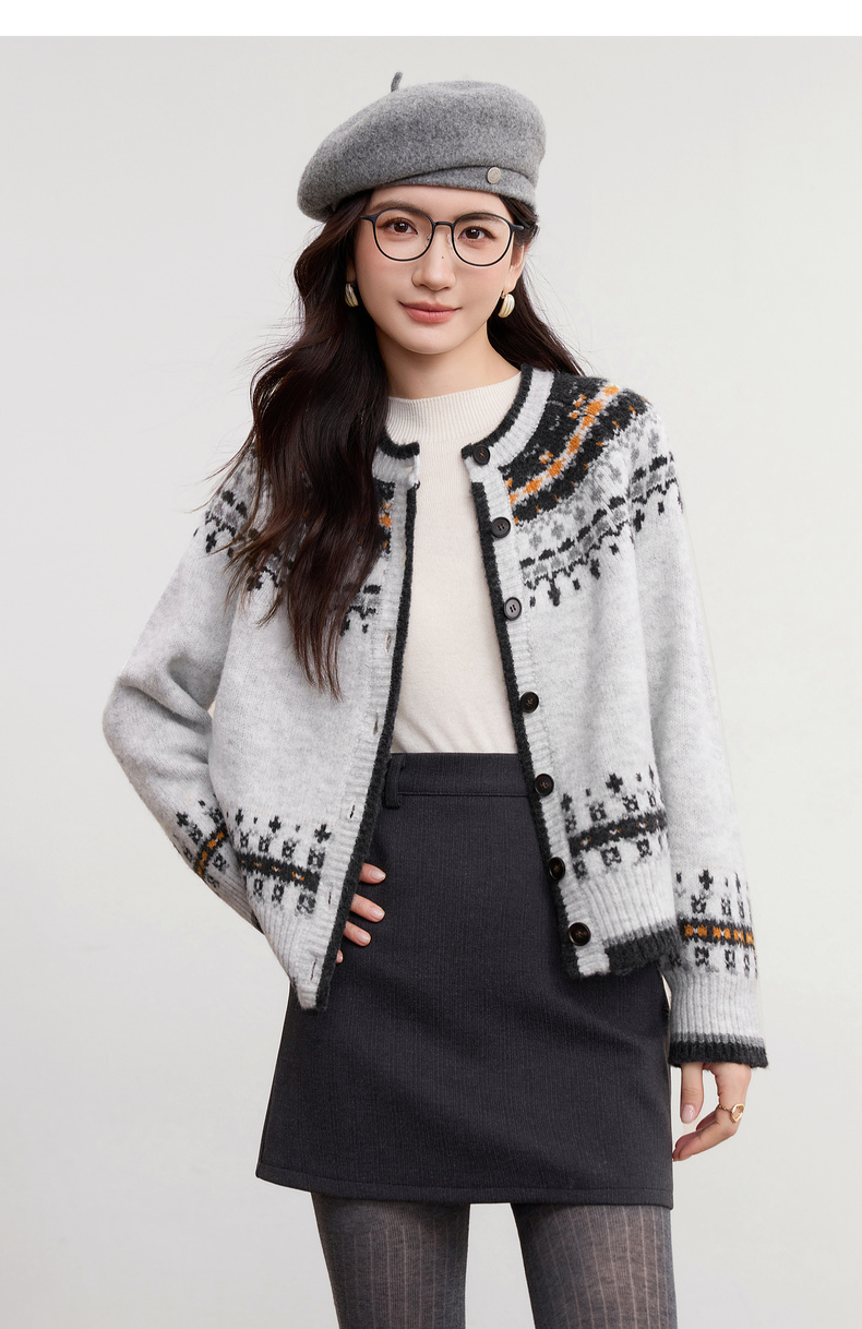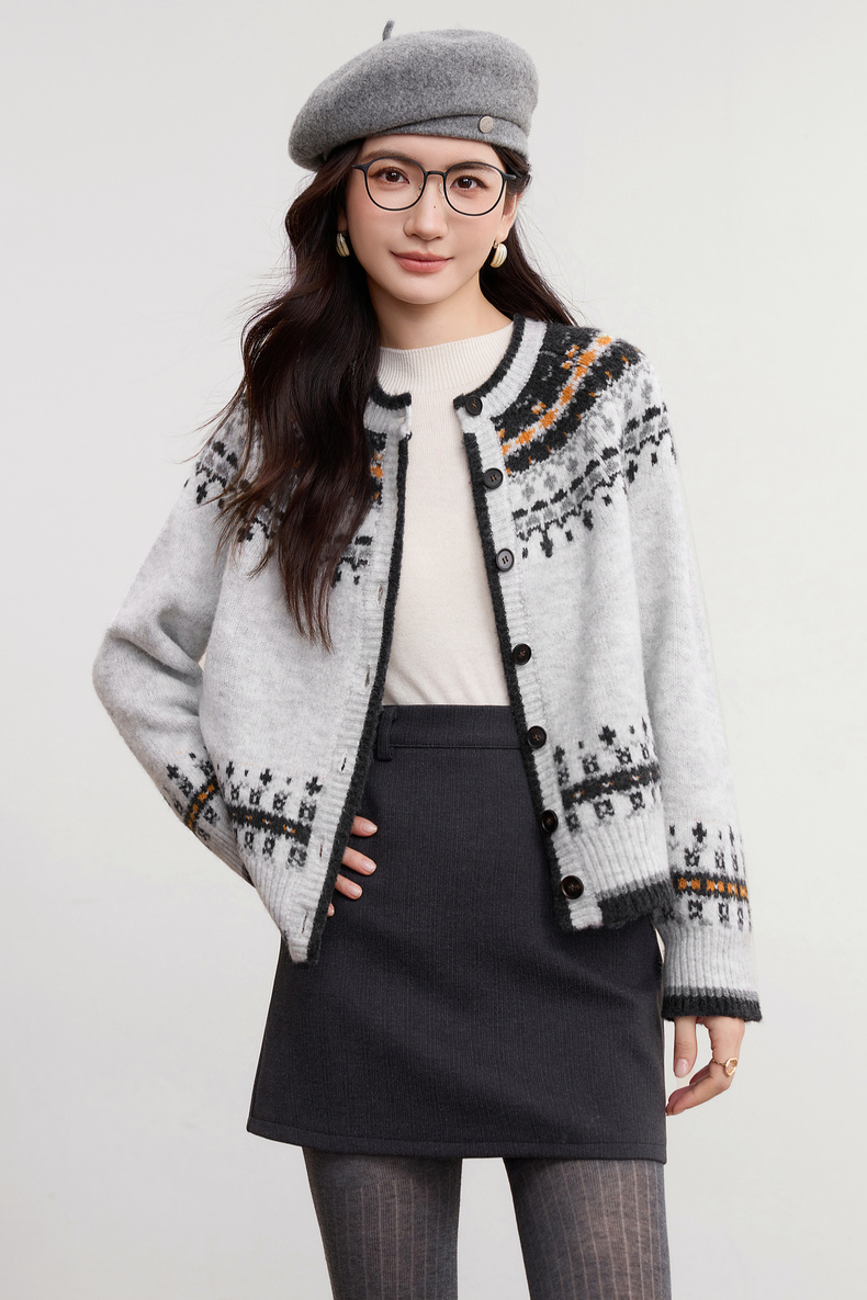 【内购】【费尔岛提花图案】复古圆领单排扣插肩袖软糯弹力厚保暖开衫毛衣-W54EB3140