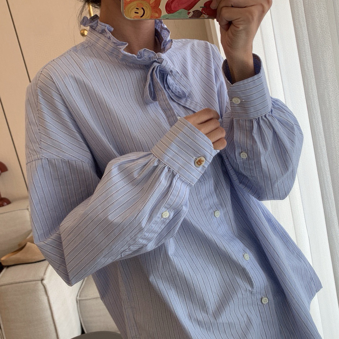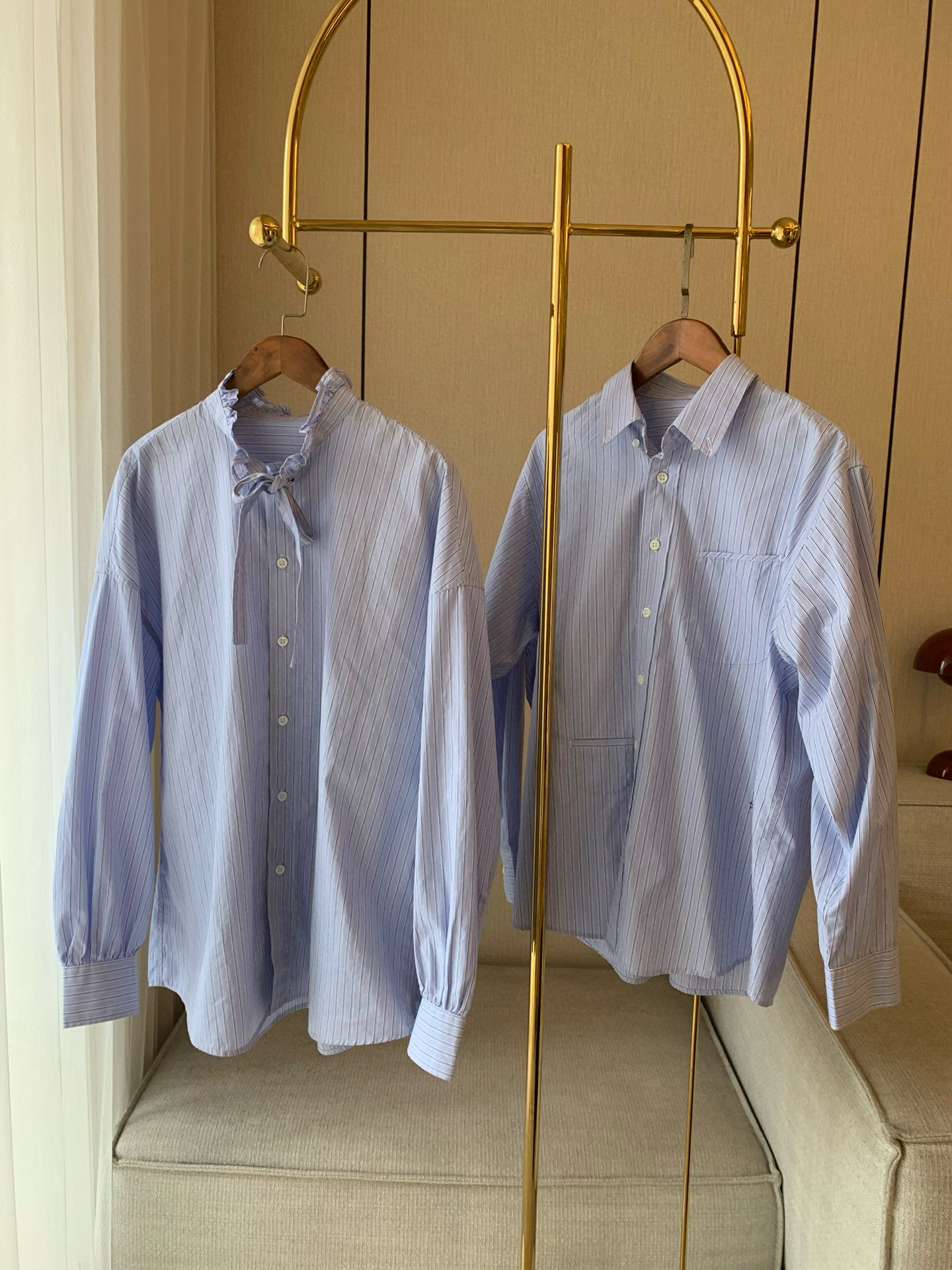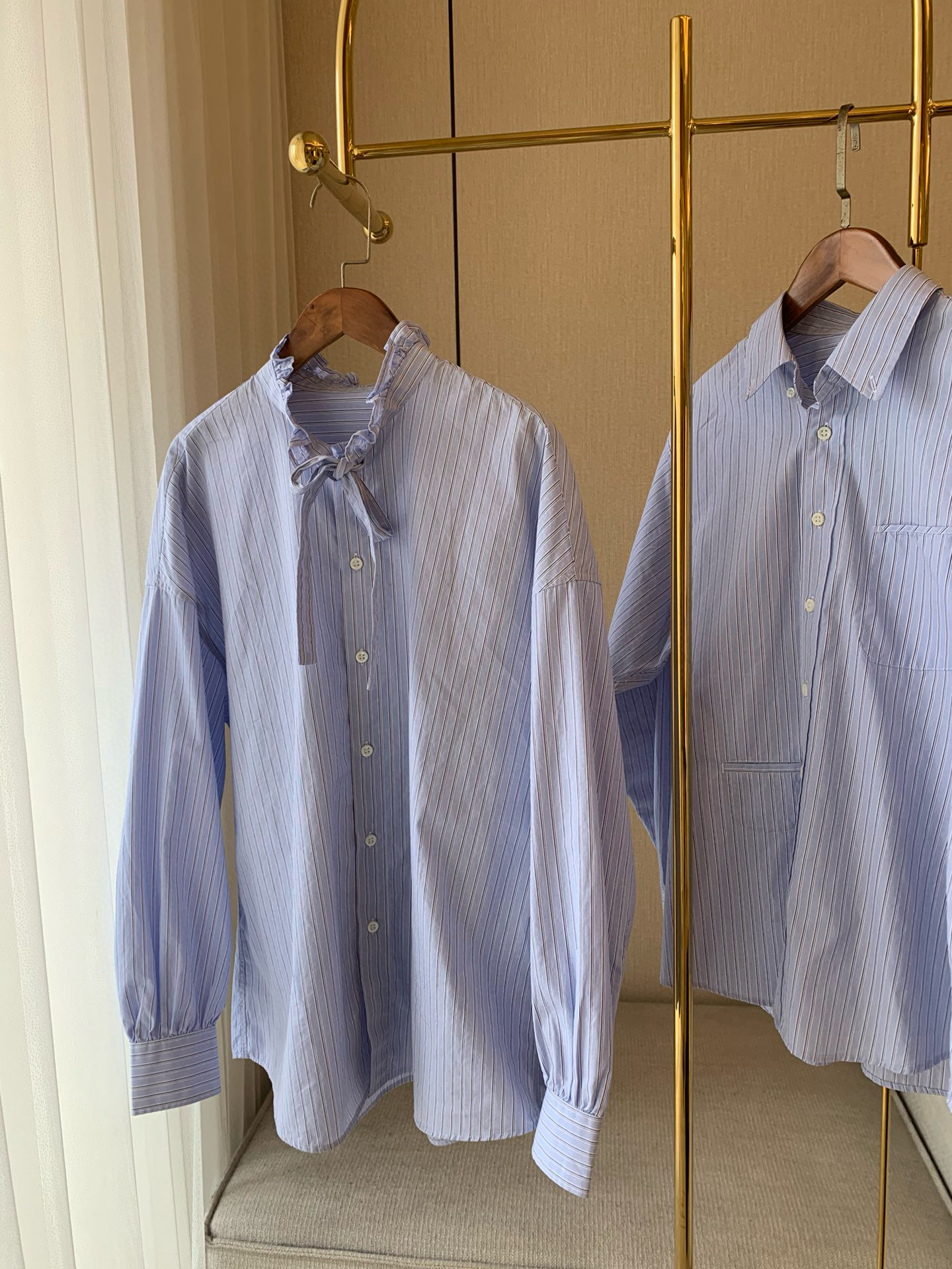 1012-5 绝美 45R高端日系风 精梳棉 单穿叠穿 蓝色条纹衬衫 衬衫领29号才发