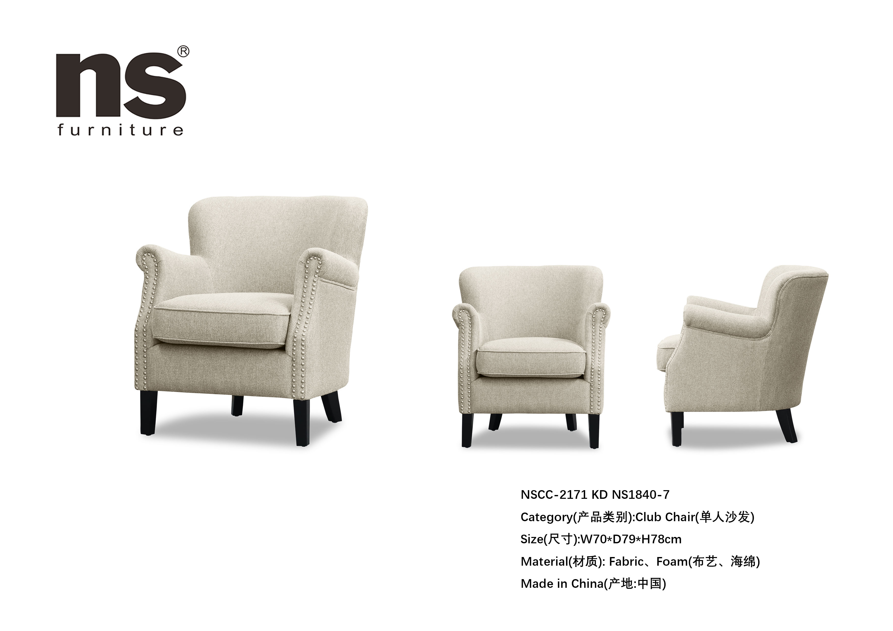 NS家居nsfurniture软包布艺单人位沙发NSCC-2171 KD