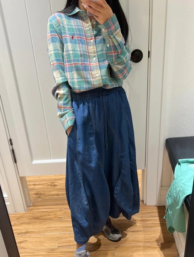 就我身高来说 塞低腰裤 会往外跑 敞开穿 就是那种直溜溜下来的小宽松吧