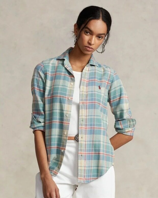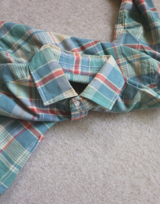 要经多道水洗 才能出来这种软糯的效果 远处看 就很像普通棉格的布料 哈~
