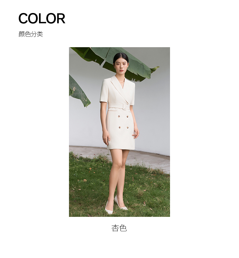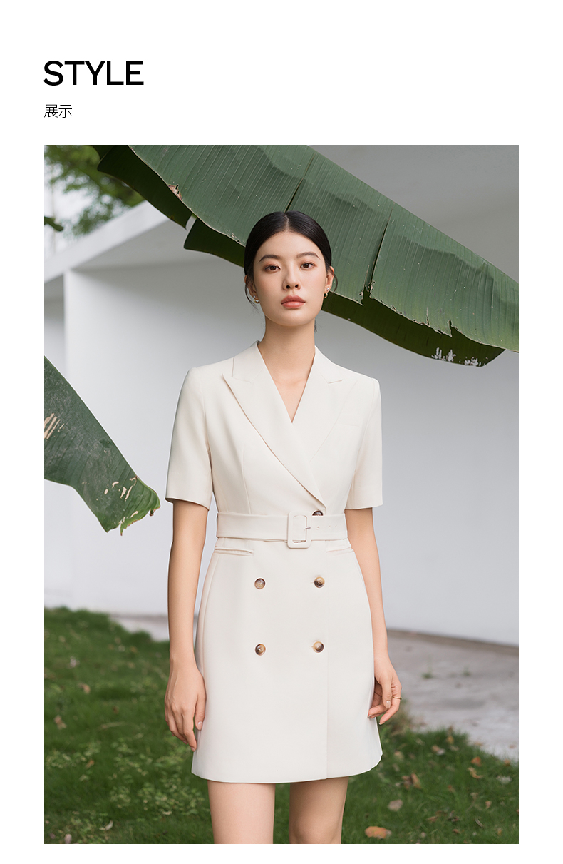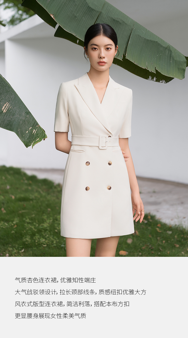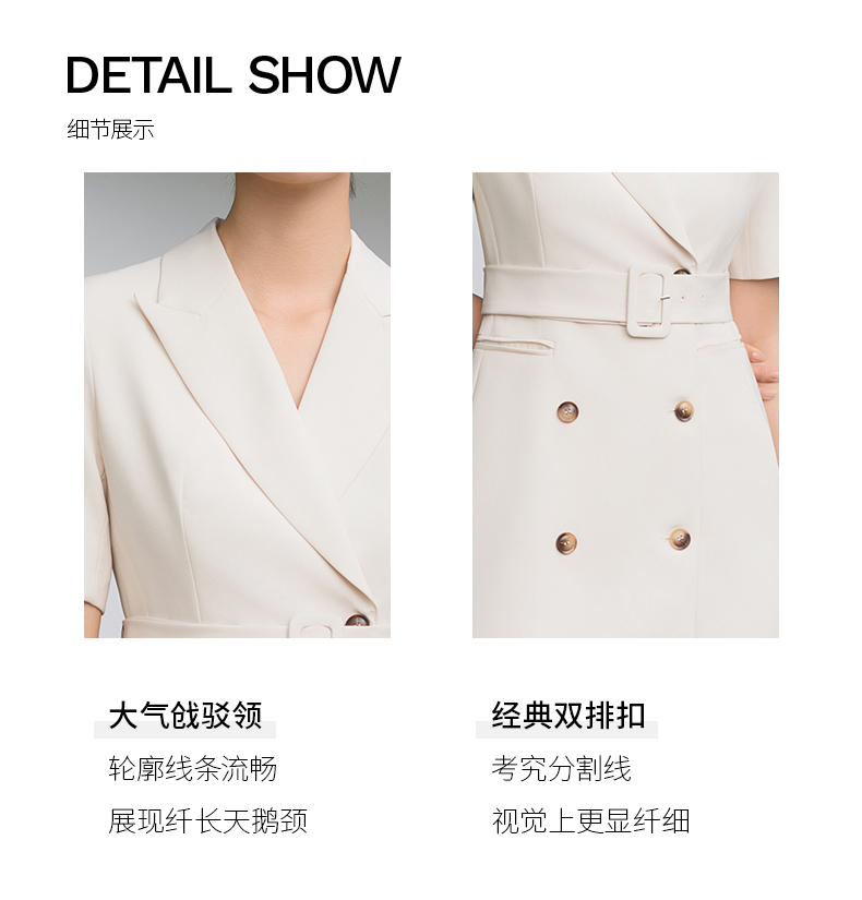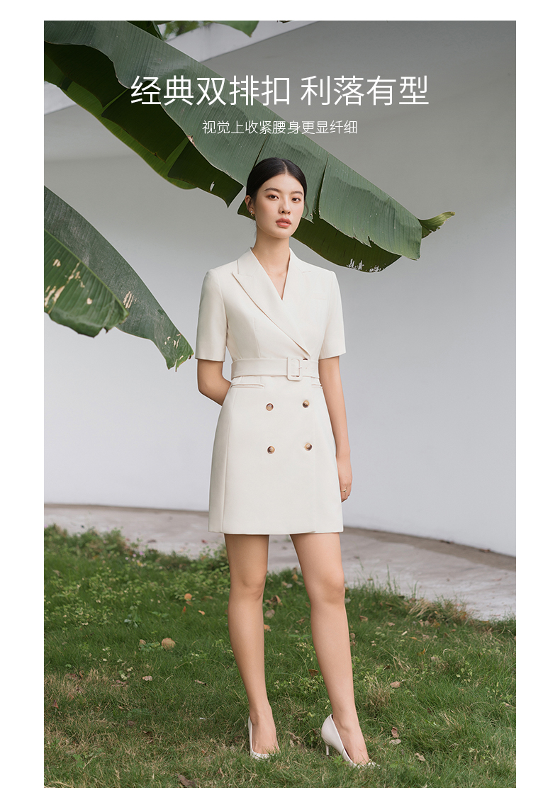 IWY/杏色西装连衣裙短袖薄款高级修身美容院显瘦工装正装商务接待Q13248