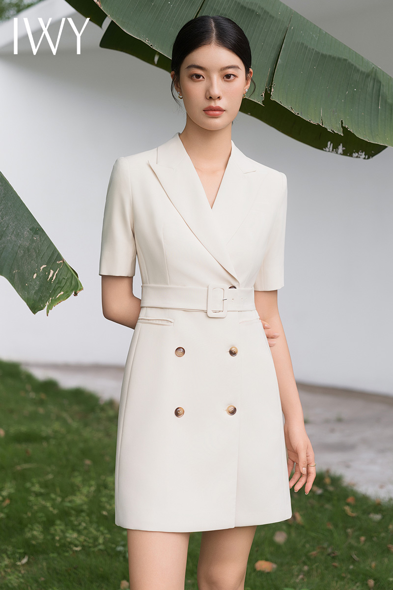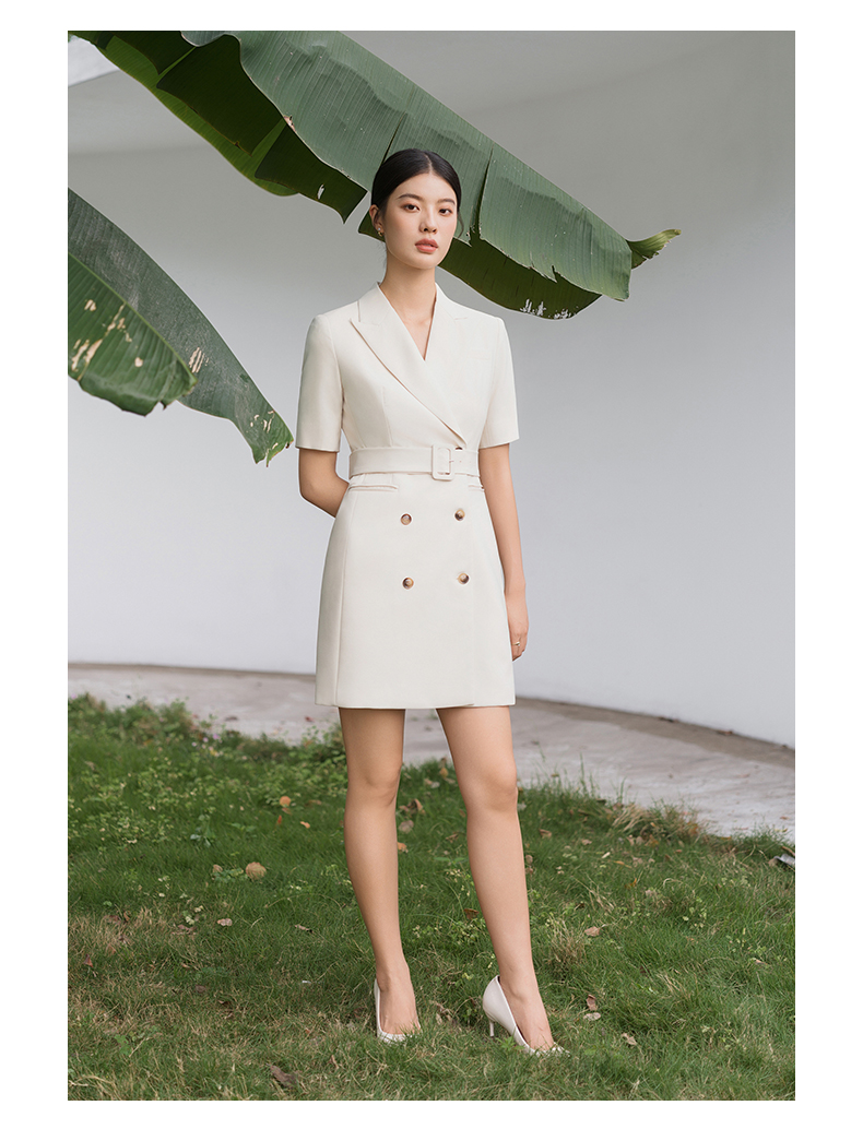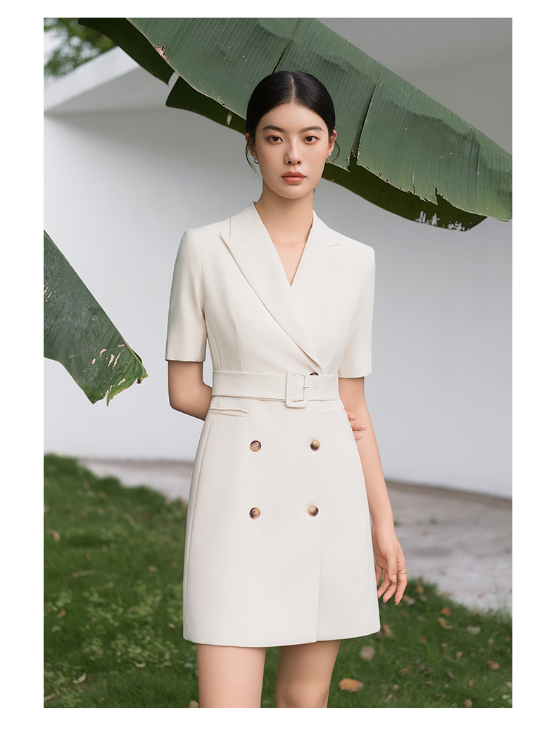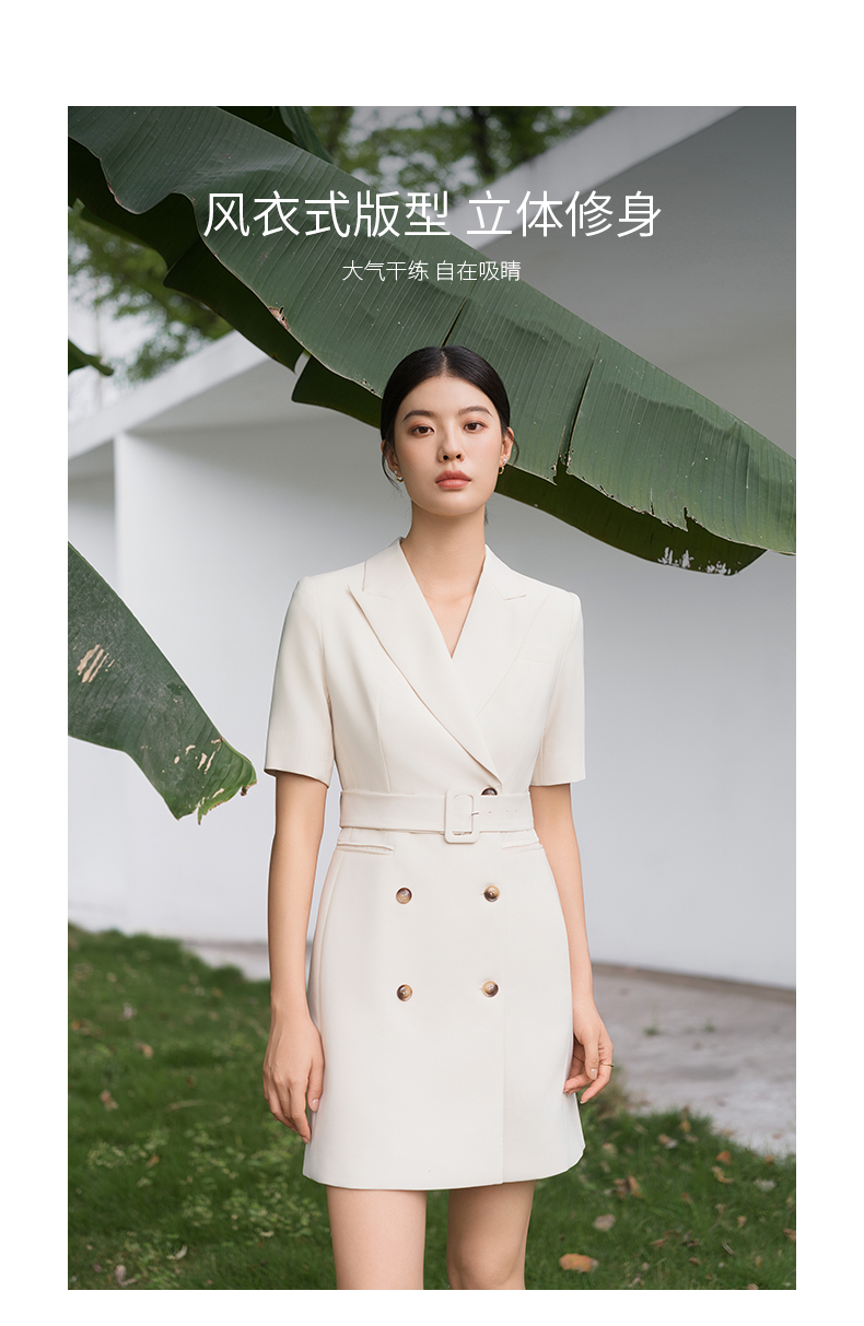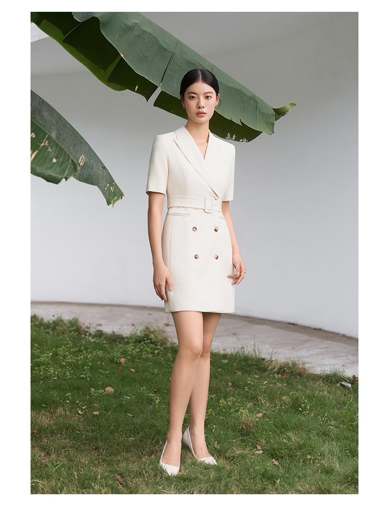 IWY/杏色西装连衣裙短袖薄款高级修身美容院显瘦工装正装商务接待Q13248