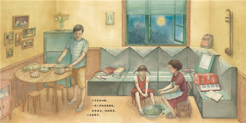 本书采用了双线叙事结构,明线是小米一家的活动,暗线是邻居们各自的生活。明线是推进故事发展的重要线索,暗线穿插于明线之中,暗线的部分并没有用文字去阐述,而是用图画作为叙事语言去丰富故事的生活化内涵。
