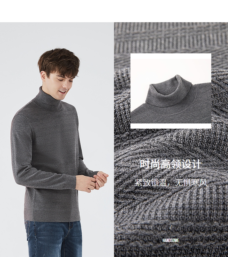 【可机洗针织衫】柒牌男装高领毛衣男秋冬季新款纯色保暖上衣 123Y70220