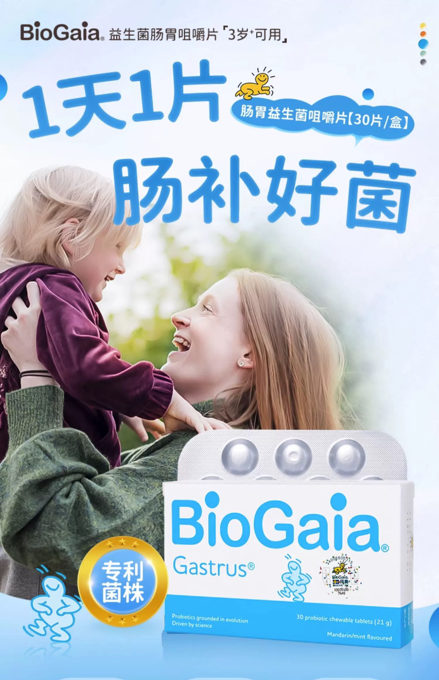 拜奥罗伊氏益生菌咀嚼片 3岁以上/孕妇/哺乳期/成人都可用 30片装