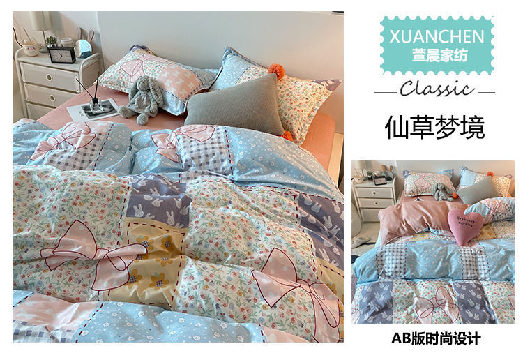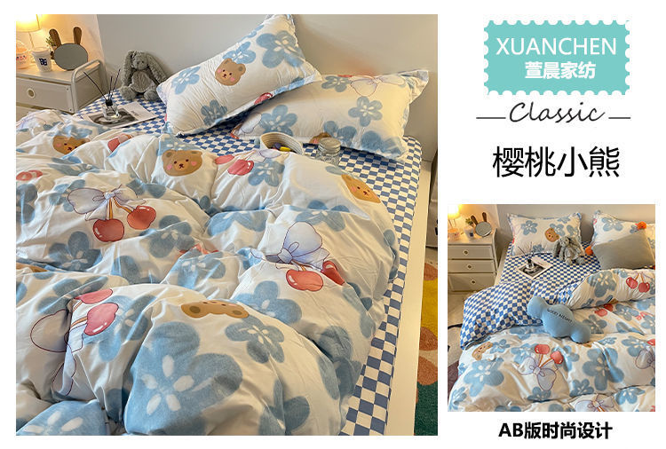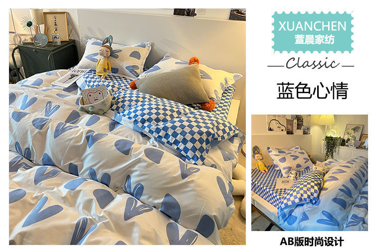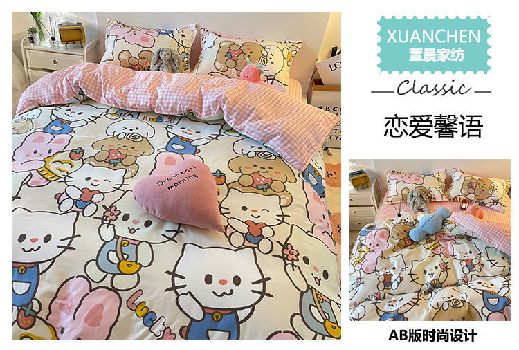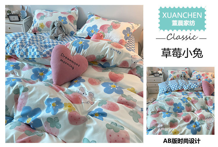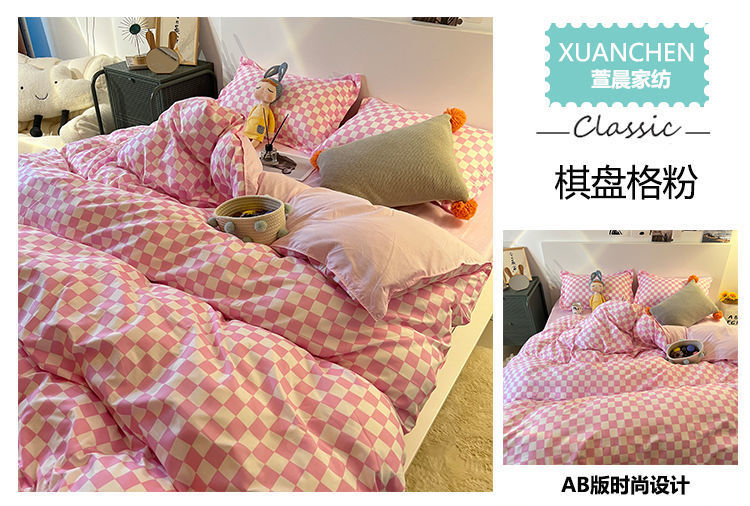 【床上三件套装!ins少女心卡通被套】粉色格子床单床上用品,温暖如初的少女心。清新粉色 悄然安放迷人魅力 少女心卡通被套,多种款式选择 学生宿舍必备时尚床上用品