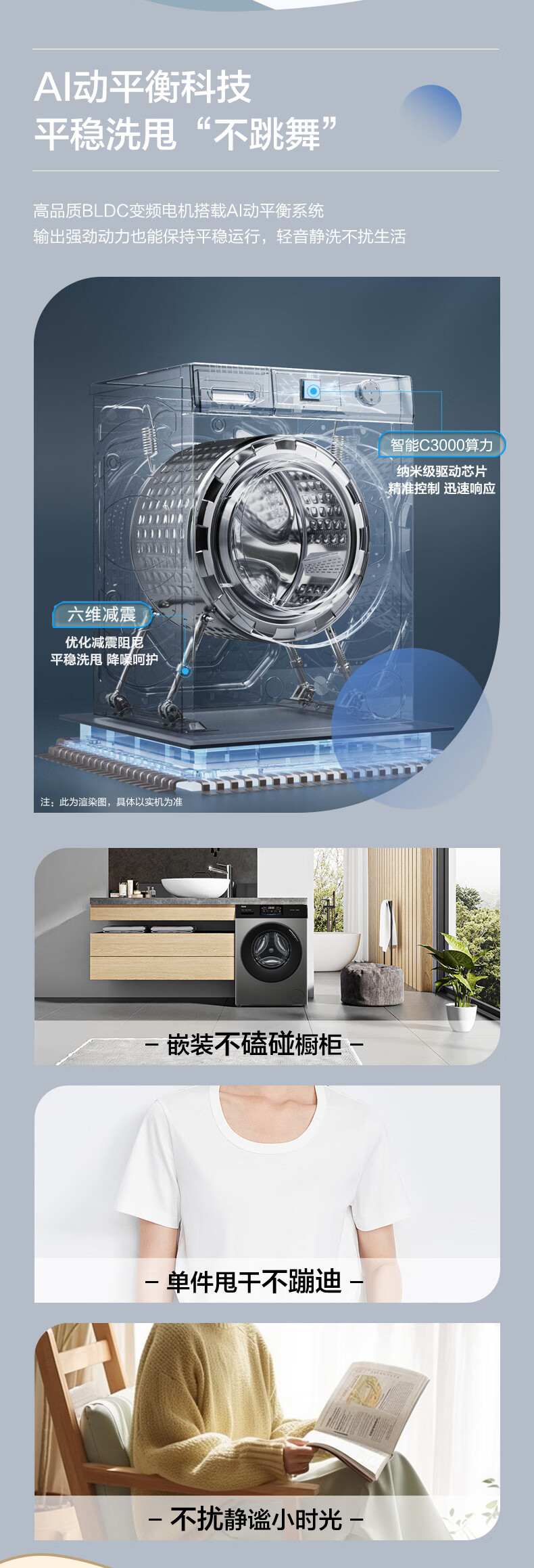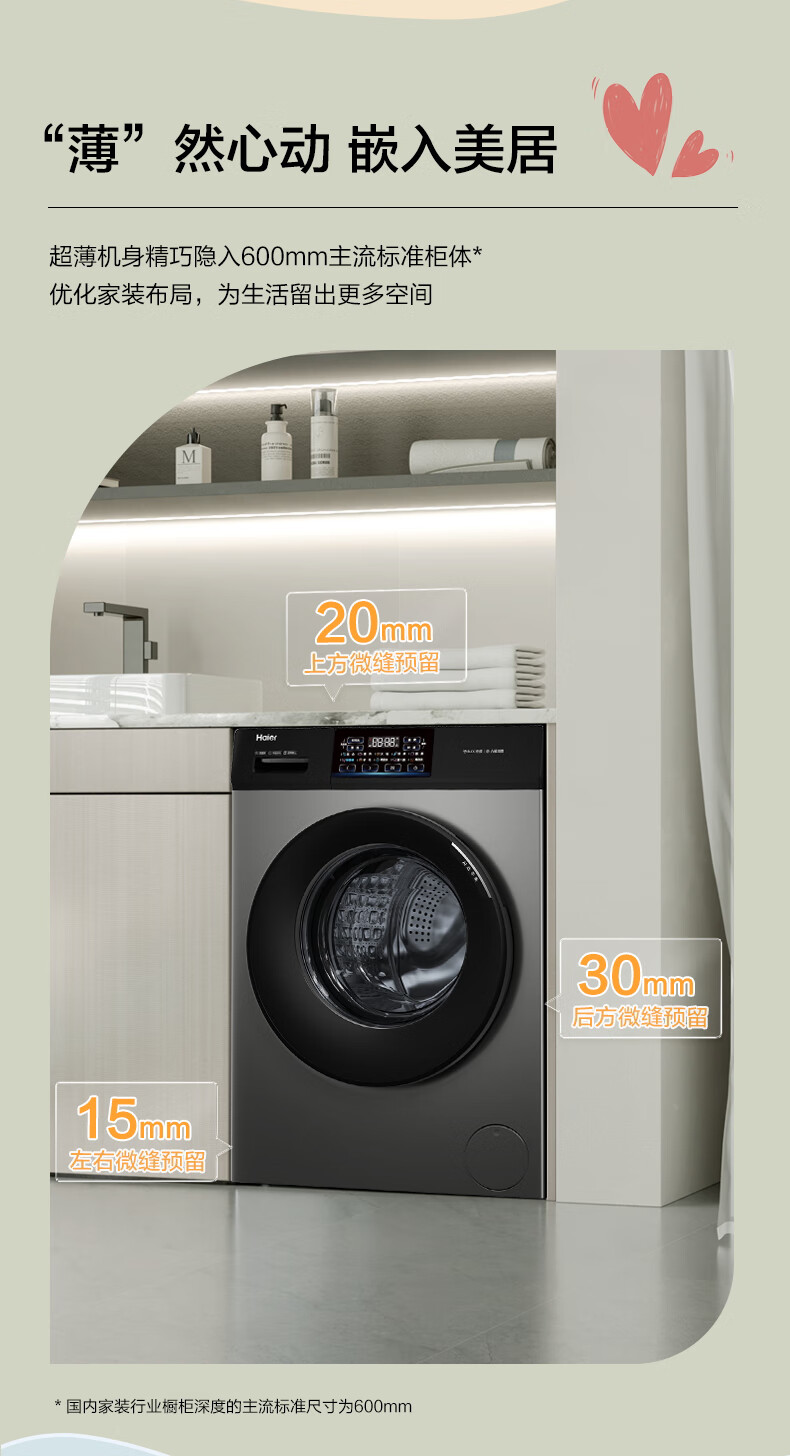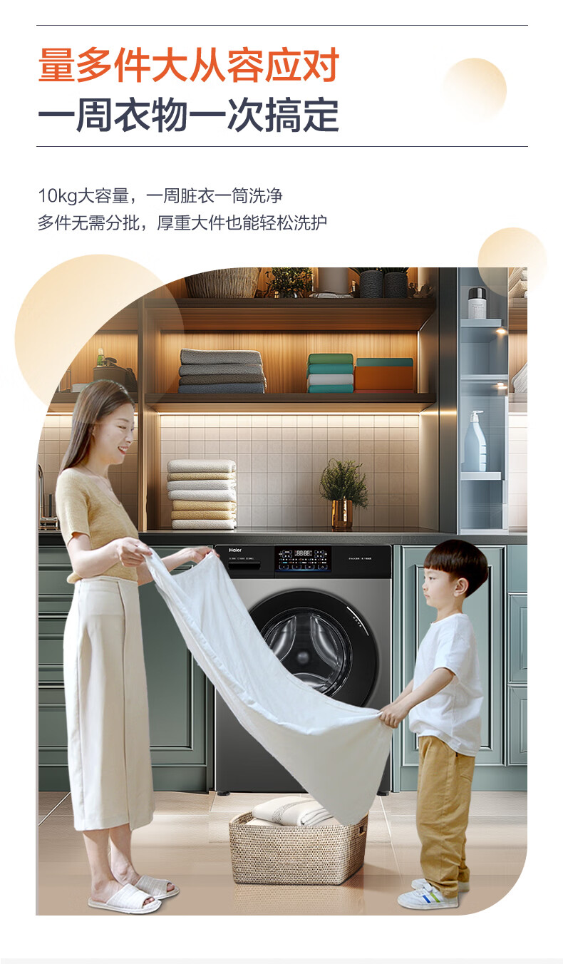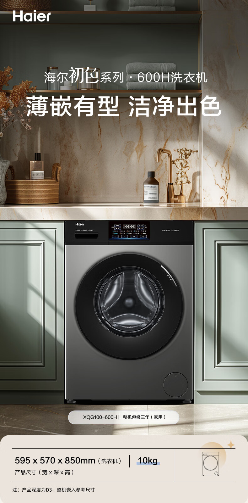 海尔(Haier)10kg滚筒洗衣机 薄嵌有型 洁净出色 六维减震高温桶自洁 XQG100-600H