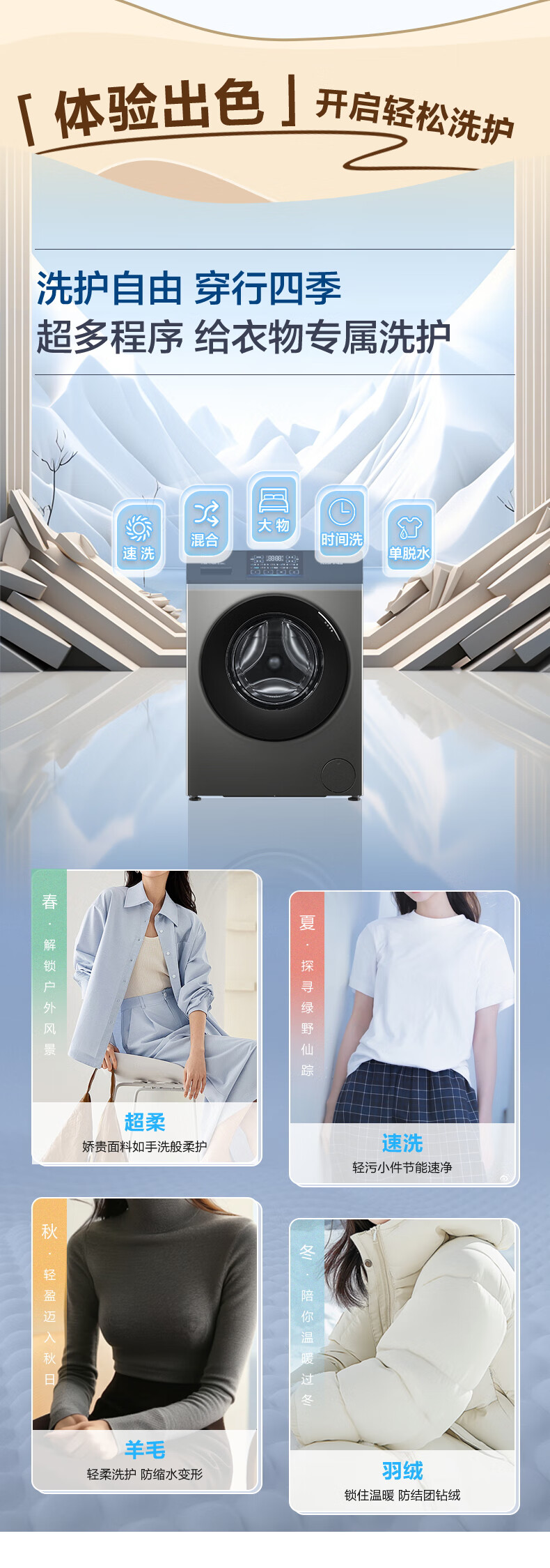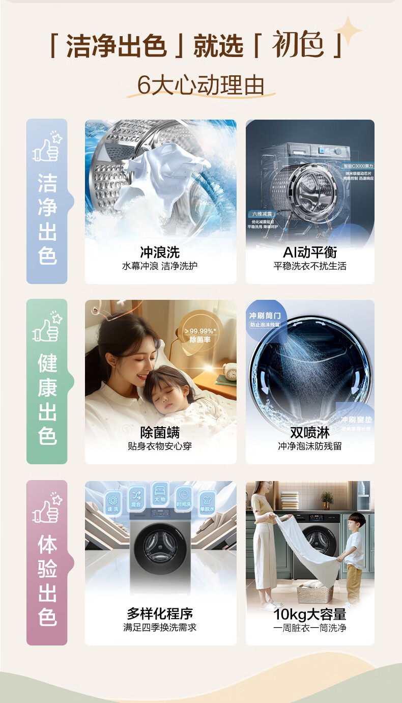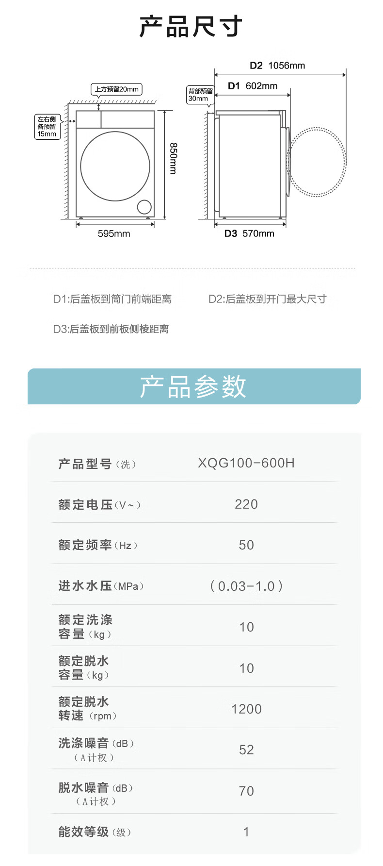 海尔(Haier)10kg滚筒洗衣机 薄嵌有型 洁净出色 六维减震高温桶自洁 XQG100-600H