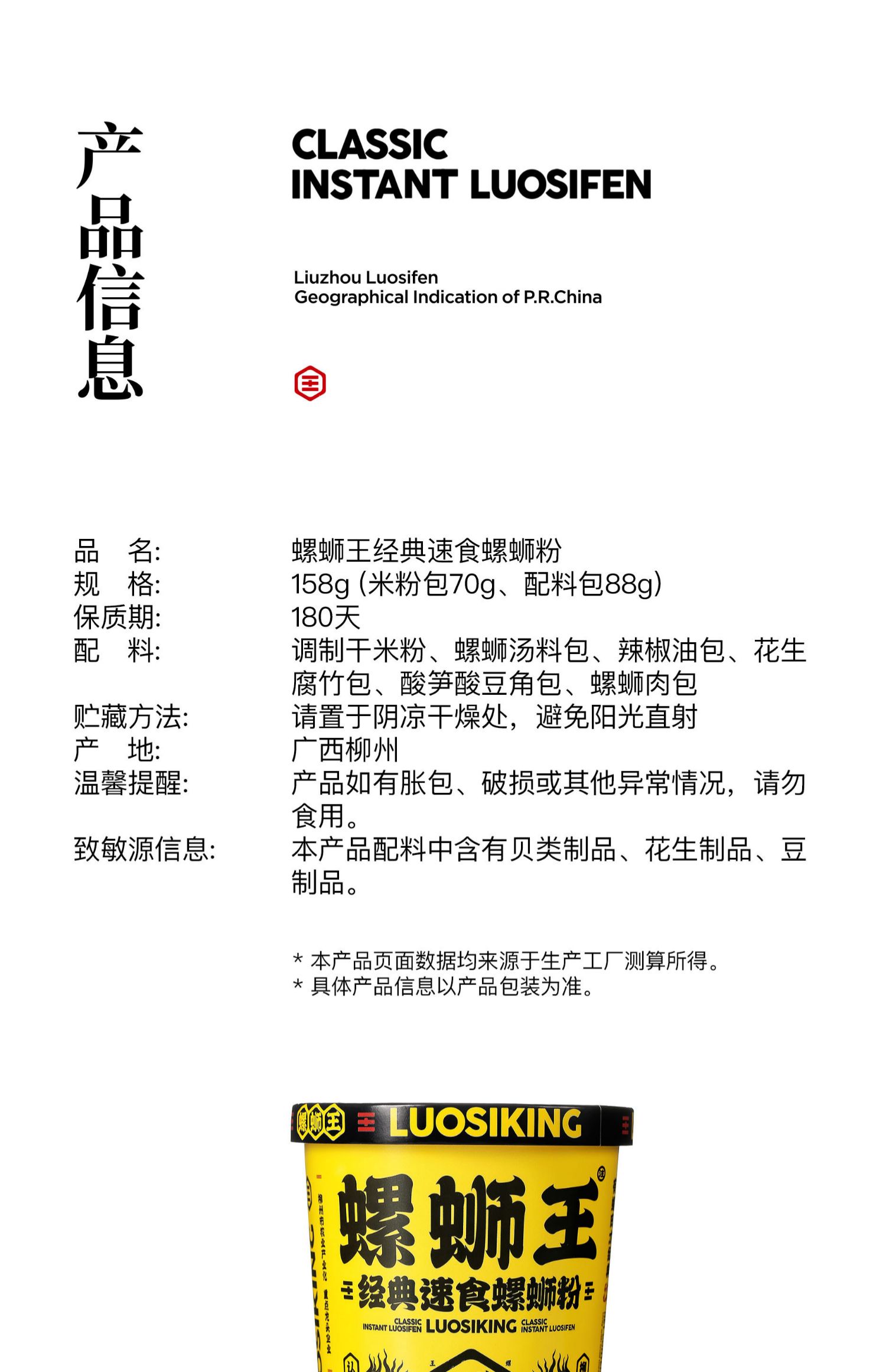 螺蛳王经典速食螺蛳粉 柳州老品牌 冲泡即吃
