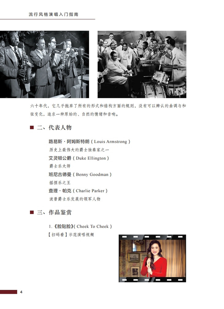 随着音乐类综艺节目的蓬勃发展,市场对国际接轨的音乐全能型人才需求越来越高。我国的声乐教育也是步入了炙热的夏天。这本全彩的音乐教程,图文、乐谱与视频联动立体,赏心悦目,由从教流行唱法20余年的曼达老师亲自操刀,从音乐风格的起源与发展、风格演唱技巧、舞台表演、舞台形象造型等方面整体讲解流行歌唱,共分为爵士、摇滚、流行和中国风四大篇章,并在最后列出了1-10级的流行歌曲训练歌单。书中所有列举歌曲全部配有由曼达老师和其优秀学生演唱、示范的高清视频。此外配有各风格的教学视频,供优惠选购。