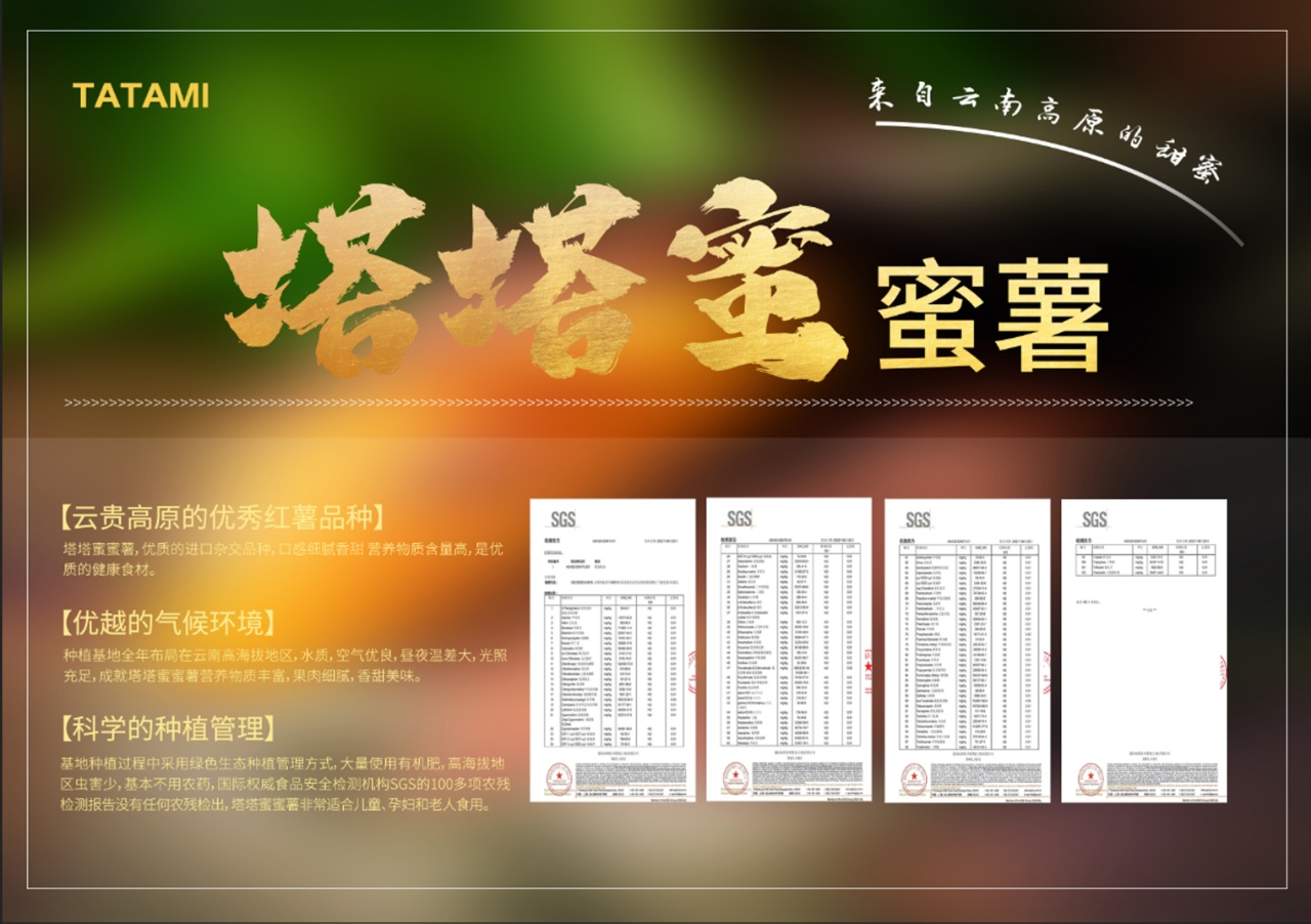 云南高山蜜薯对种植土地的土质,气候,海拔都有较高要求,云南得天独厚的气温和光照是塔塔蜜蜜薯的高品质的基础。蜜薯生长在云南海拔2000多米的高原地区,种植过程中采用有机生态种植方式,虫害少,日照时间长。因日照充足,营养物质与糖分充分累积,使得生长出来的蜜薯,不仅保证了蜜薯的营养价值高,且口感更甚于一般红薯,甘甜纯净。