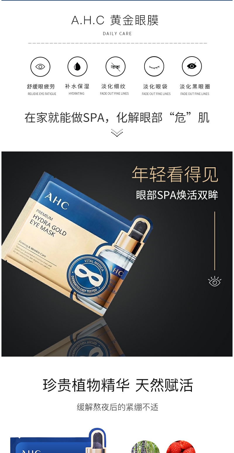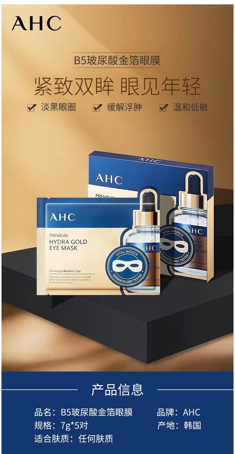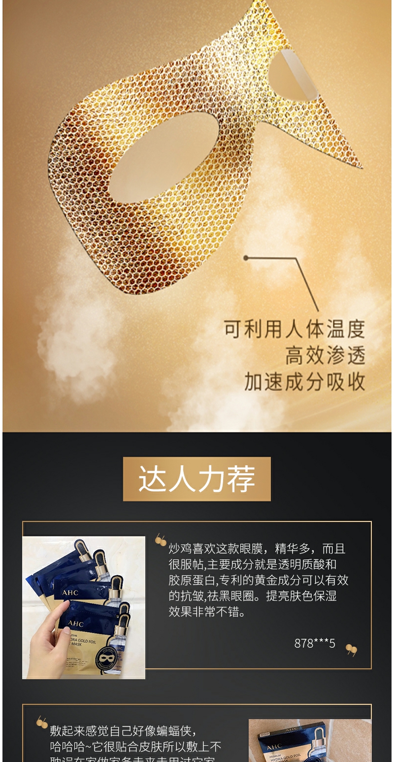 【YZ】AHC玻尿酸黄金眼膜5片淡化黑眼圈细纹紧致贴膜去眼袋