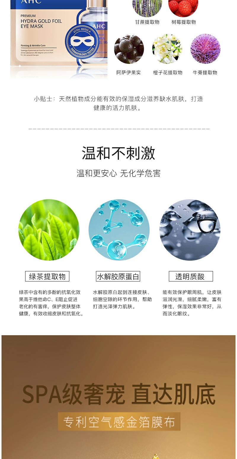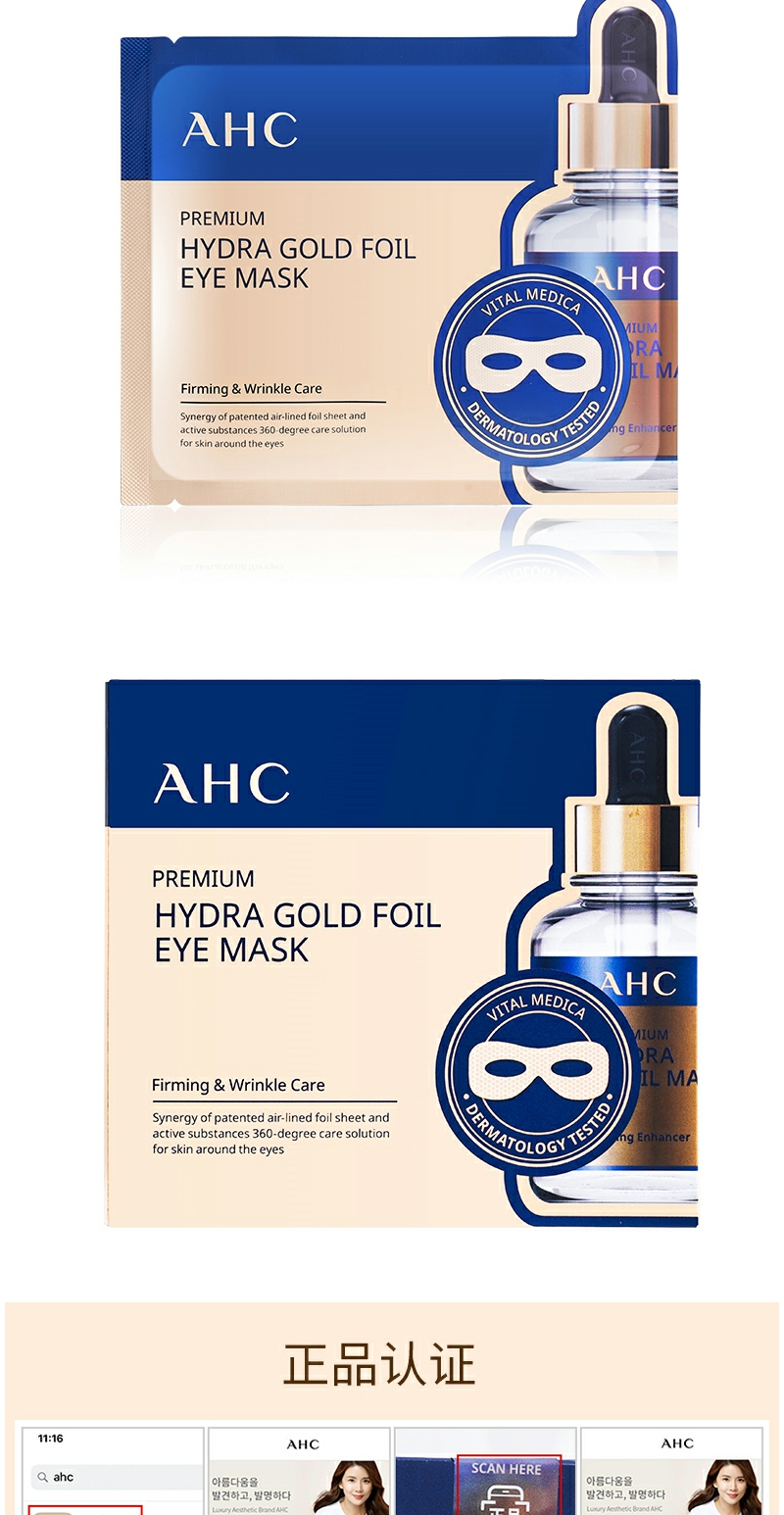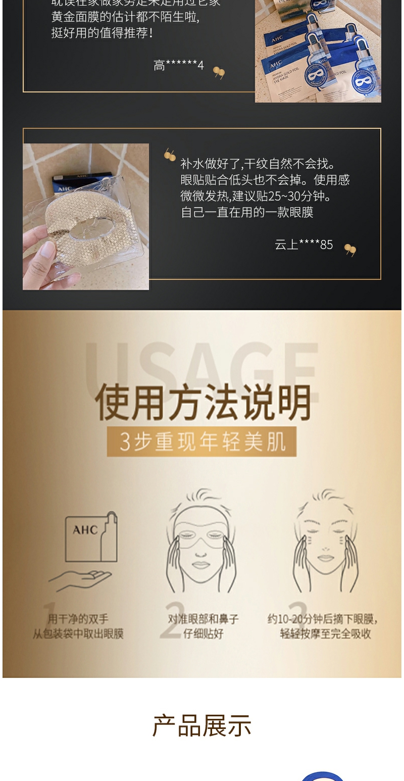 【YZ】AHC玻尿酸黄金眼膜5片淡化黑眼圈细纹紧致贴膜去眼袋