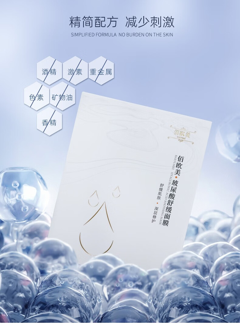 佰欧美多重玻尿酸优效舒缓精华面膜男女保湿皮肤干燥护肤贴片面膜8片/盒
