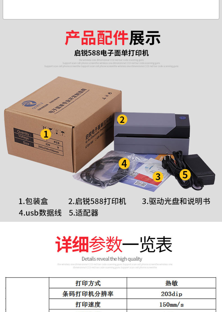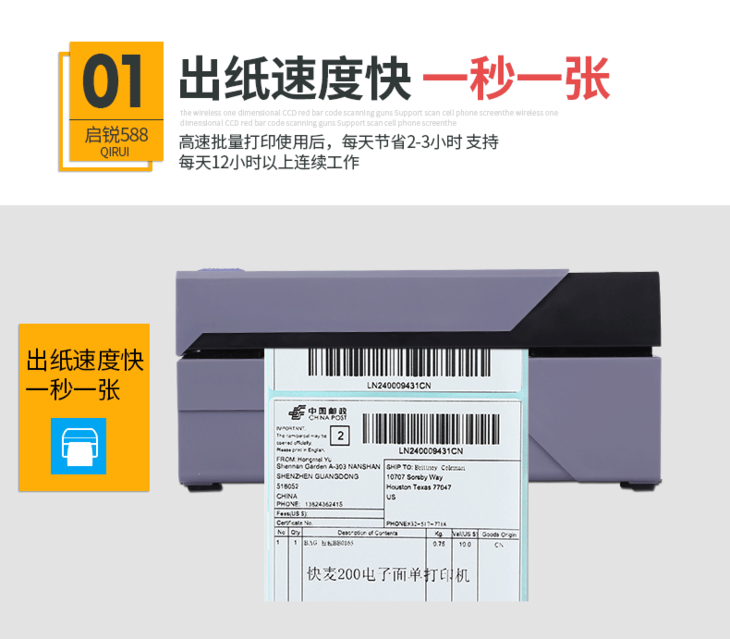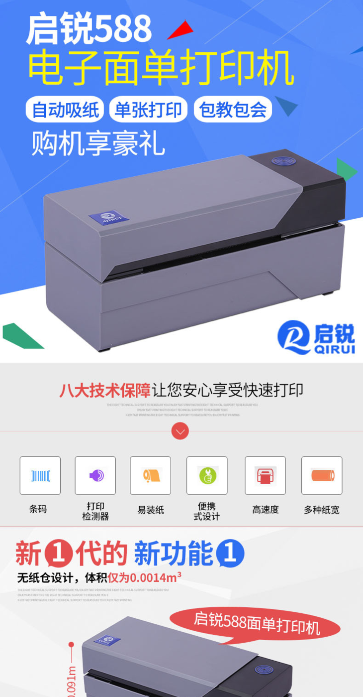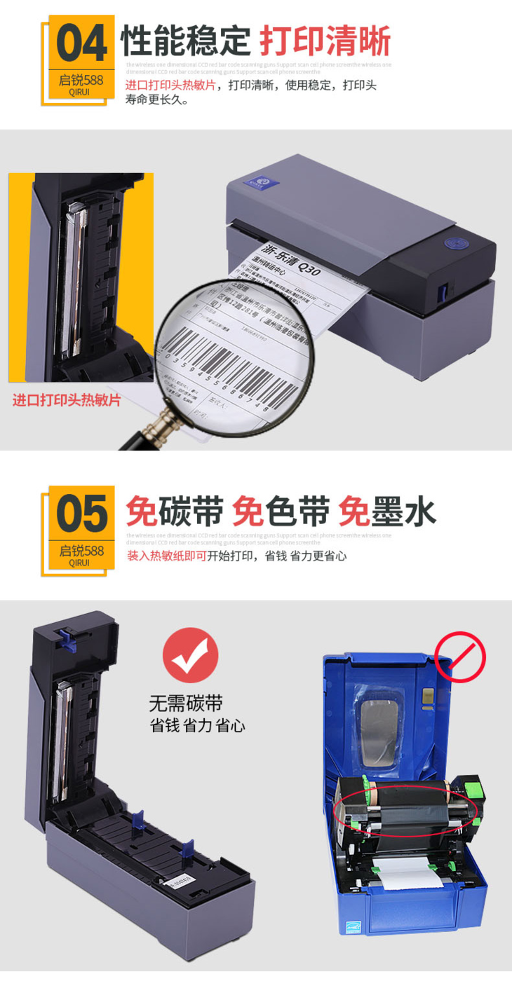 启锐QR588热敏发货单不干胶标签条码快递单电子面单打印机