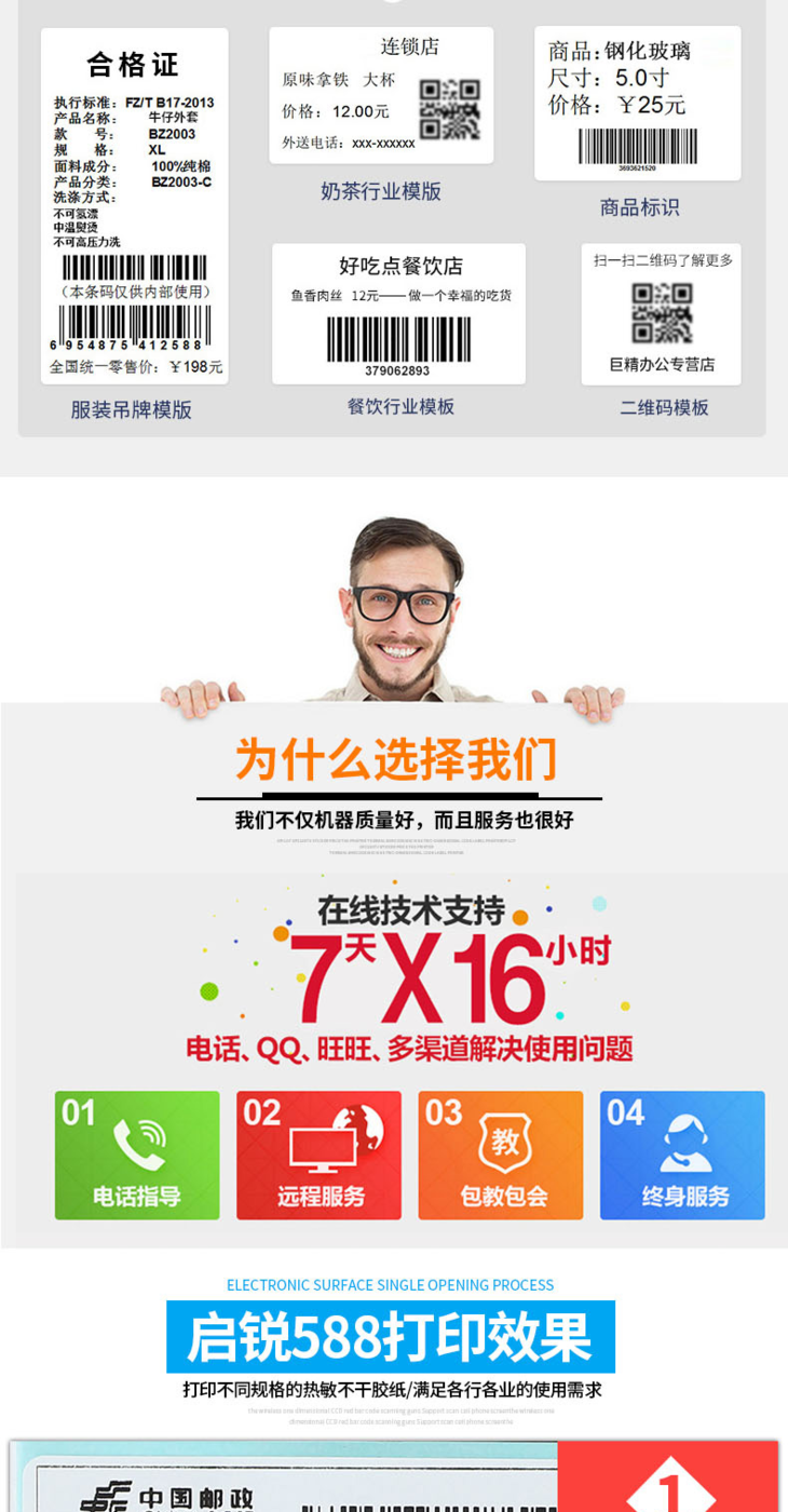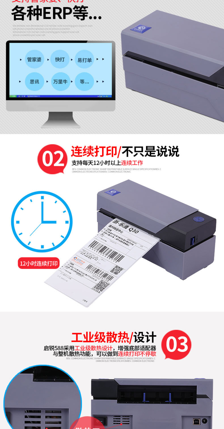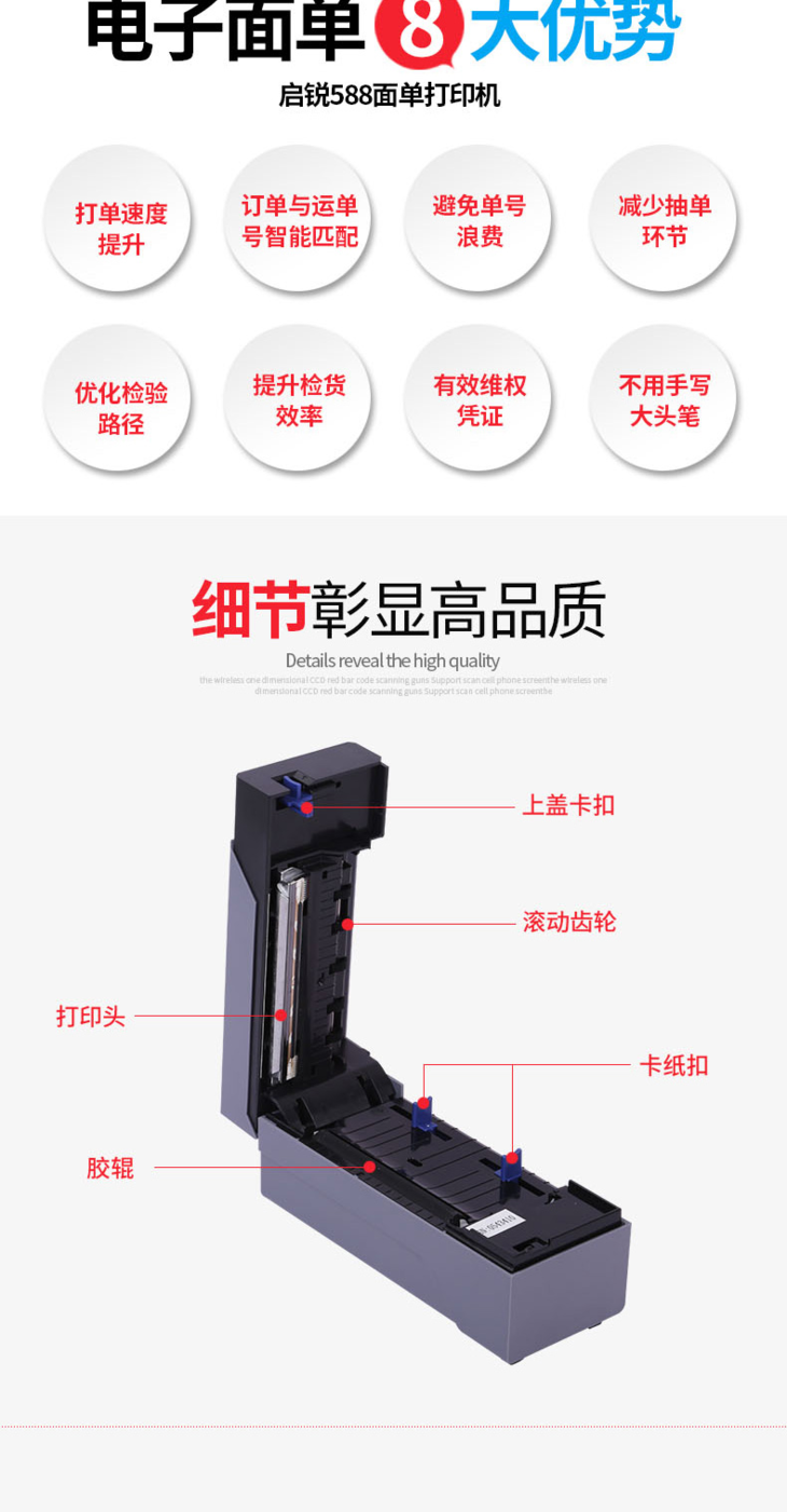 启锐QR588热敏发货单不干胶标签条码快递单电子面单打印机