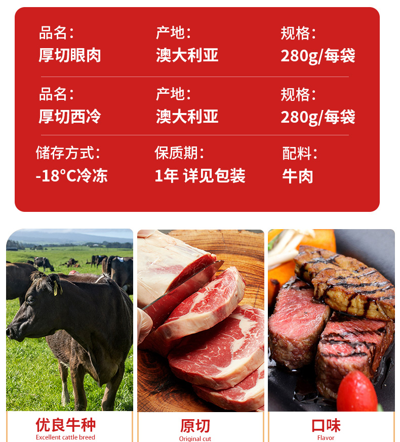 ③ 西冷厚切280g*2+肉眼厚切280g*2