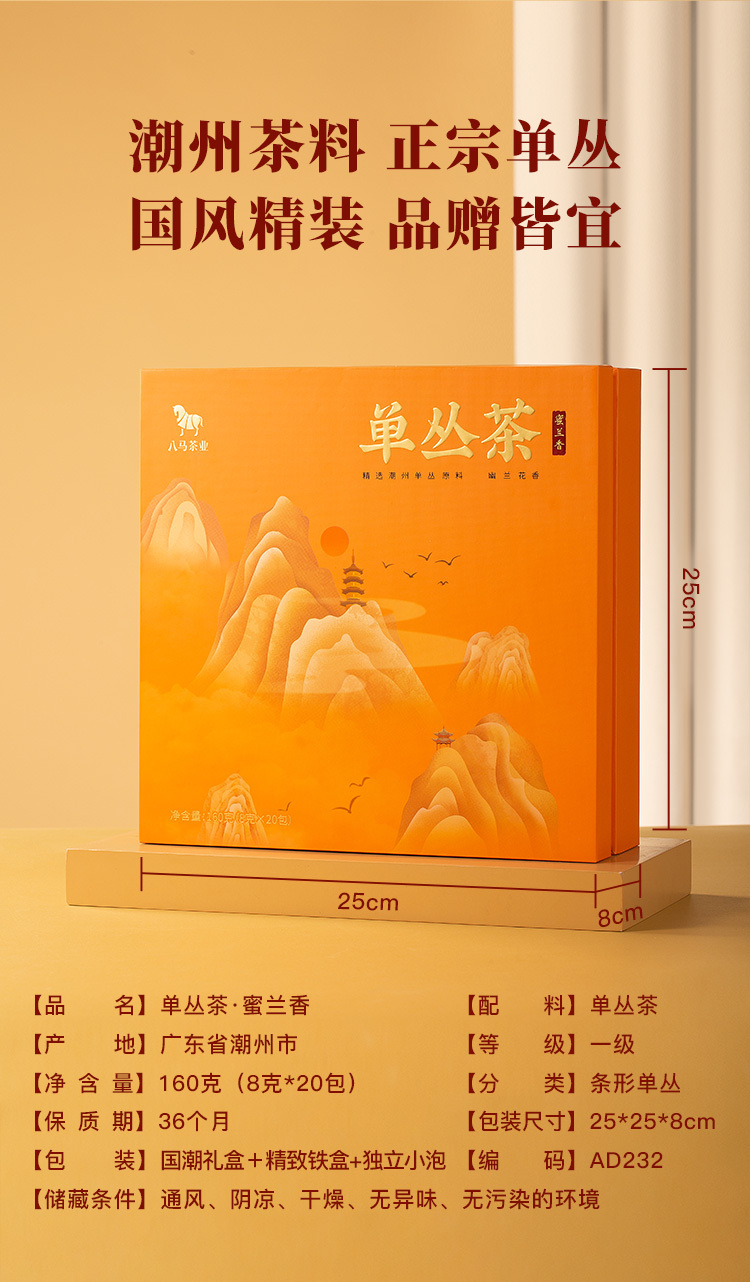 八马茶业潮州单丛茶蜜兰香乌龙茶送人茶叶160礼盒装AD232