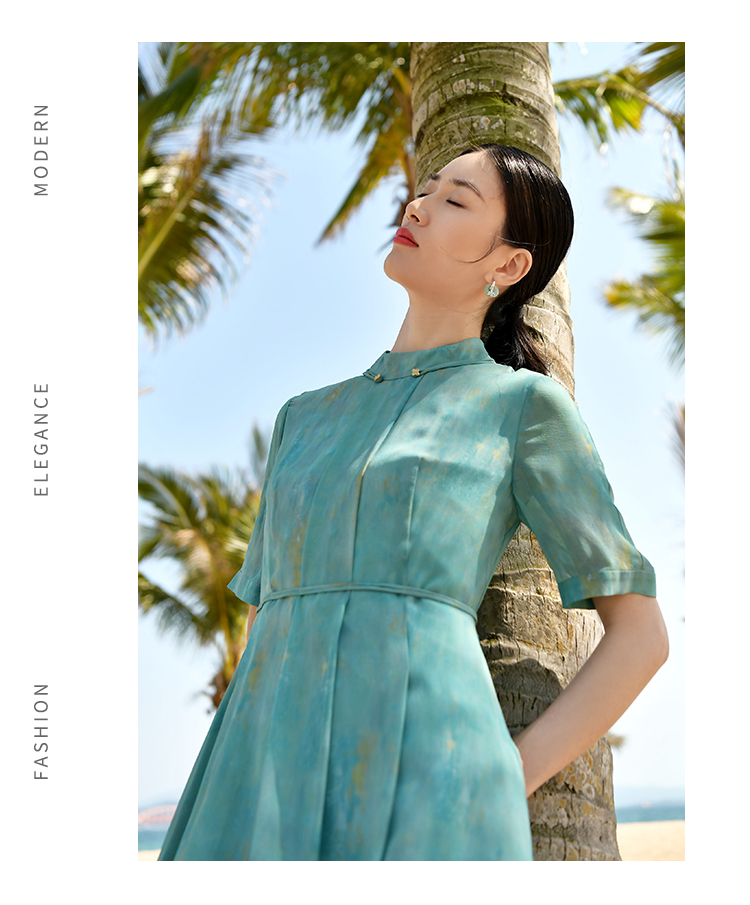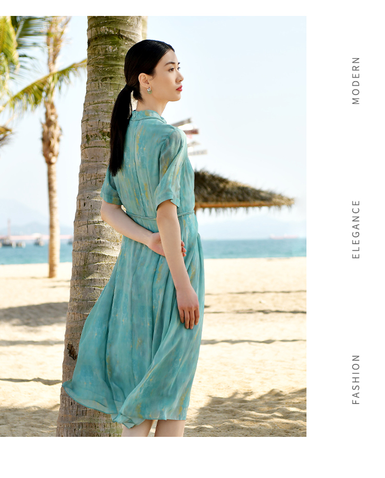 佐尔美夏季新款乔其印花桑蚕丝连衣裙E12LS46