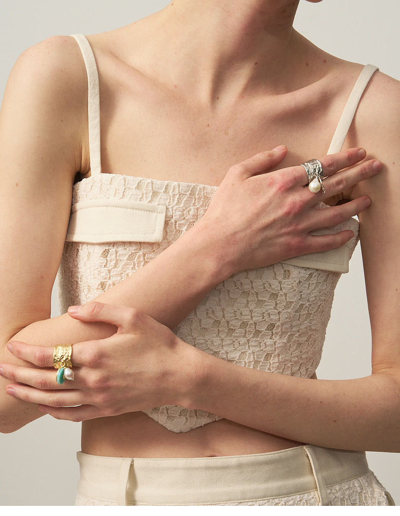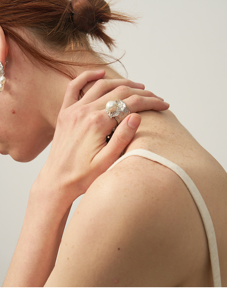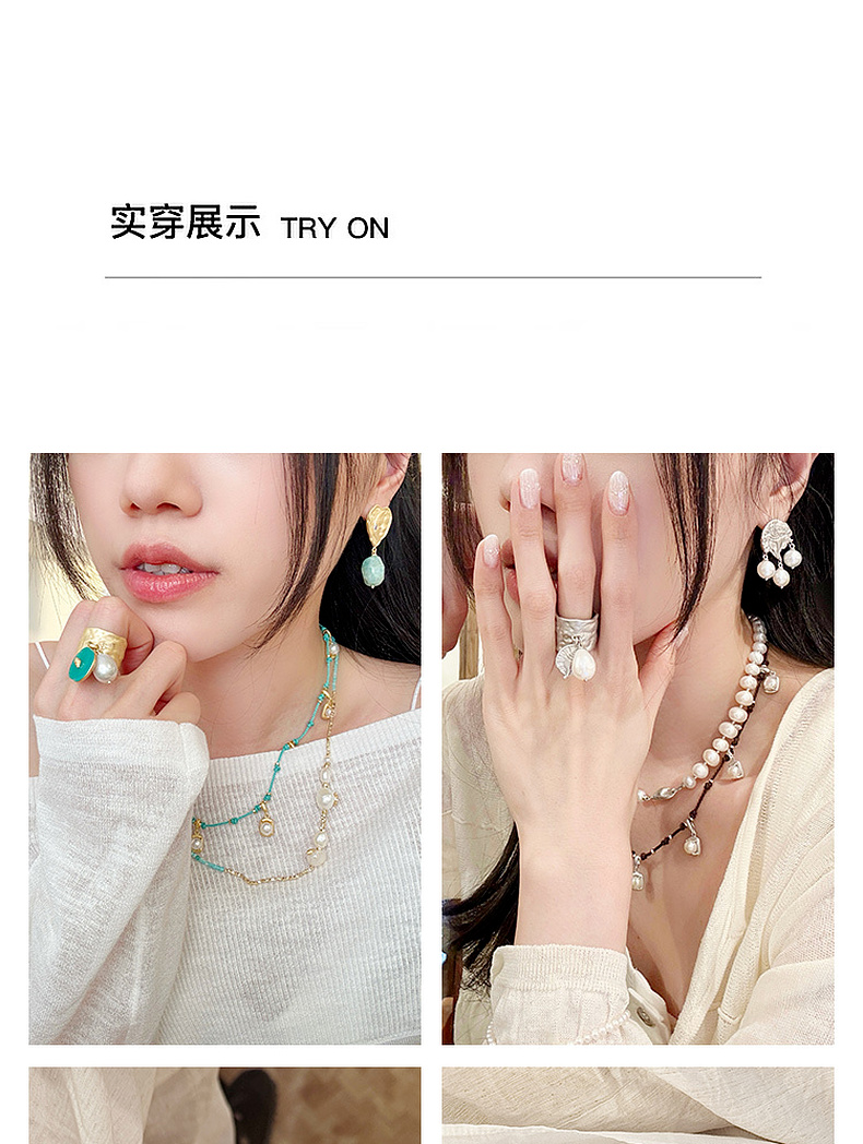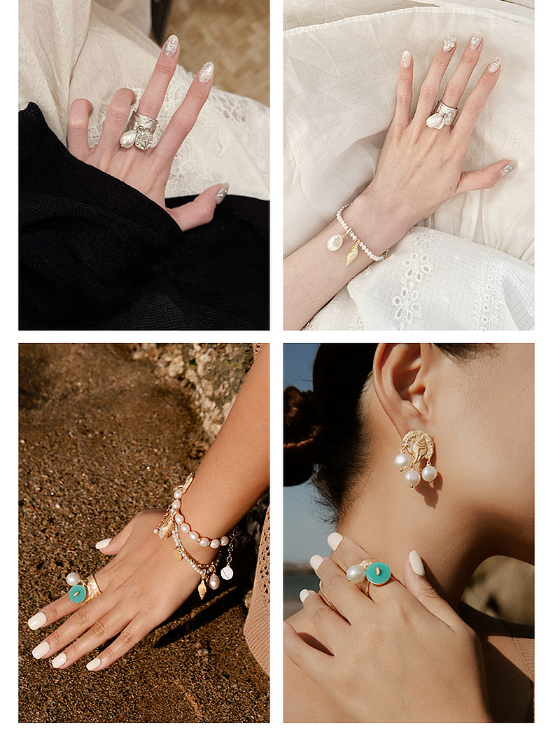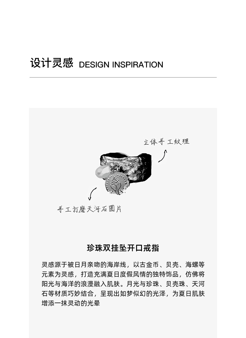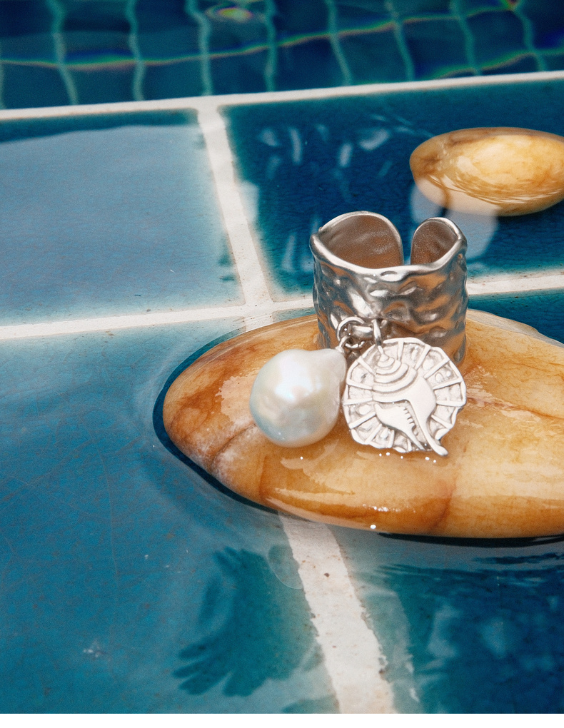 lost in echo2025夏季新款度假原创小众个性珍珠手工挂坠开口戒指