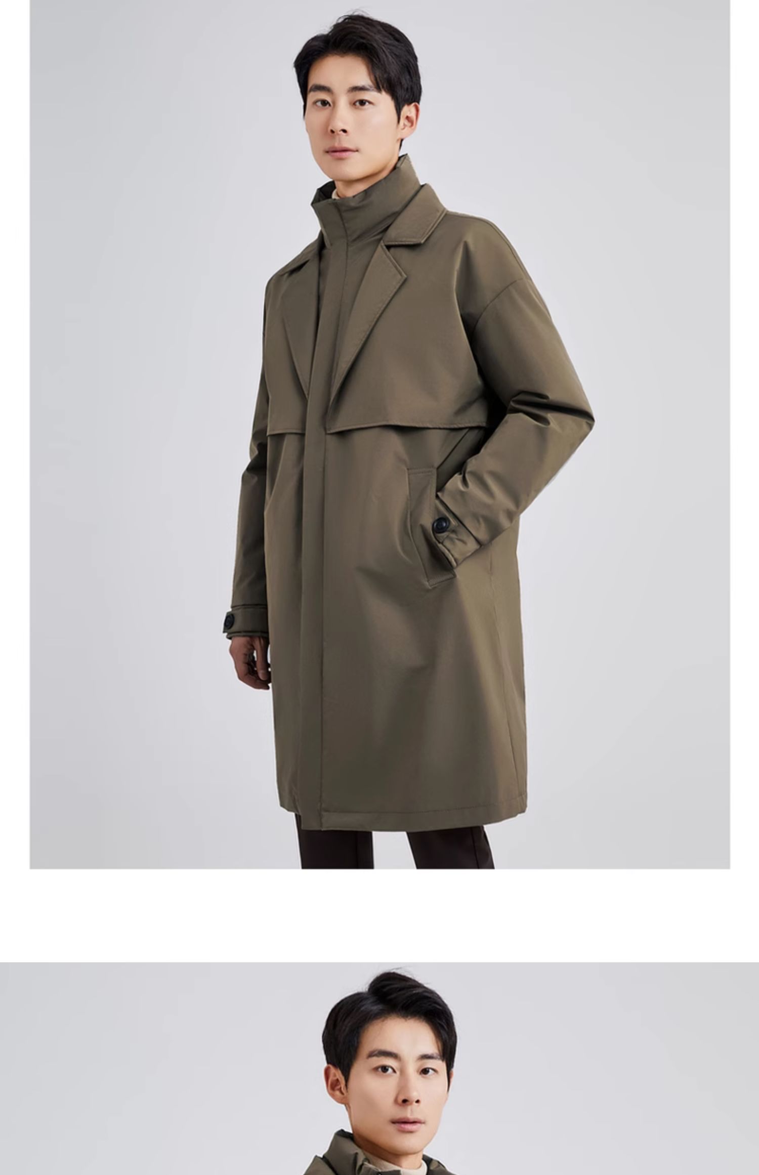 圣得西中长款风衣式立领羽绒服冬款中青年加厚防寒保暖外套2362942840