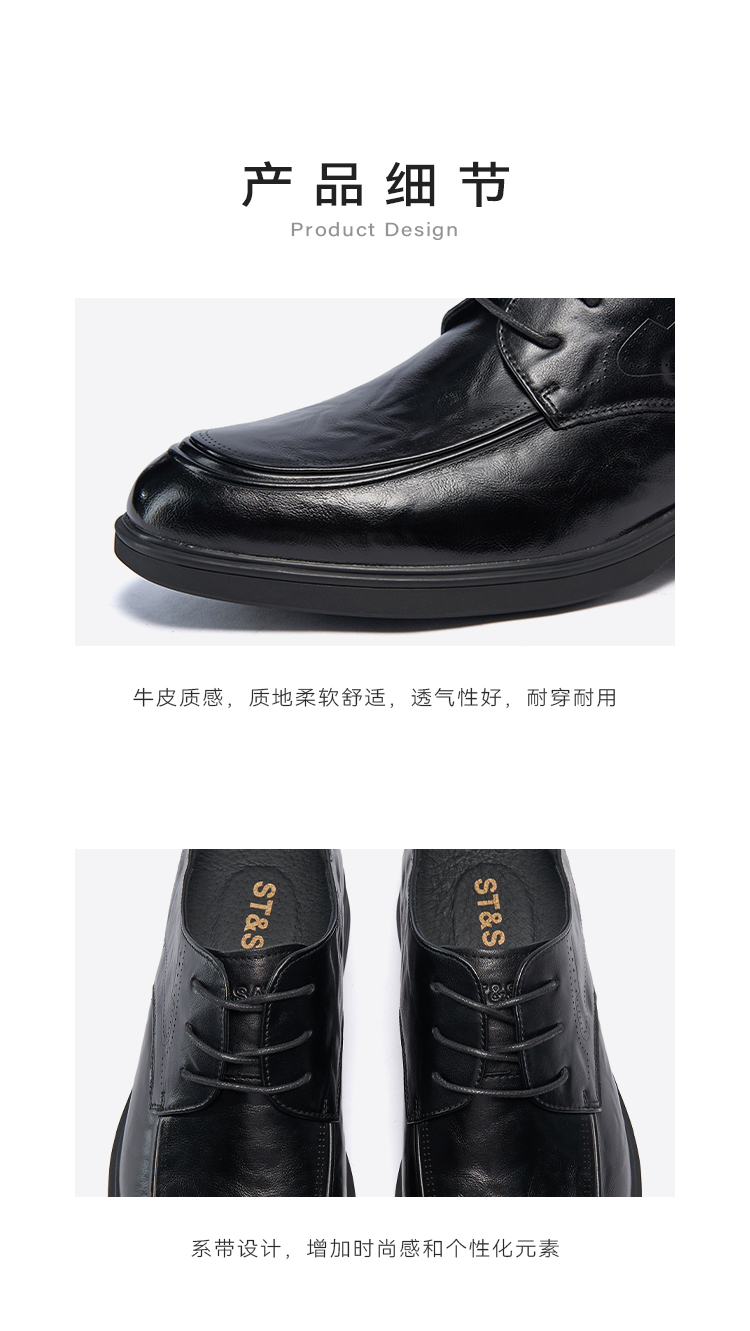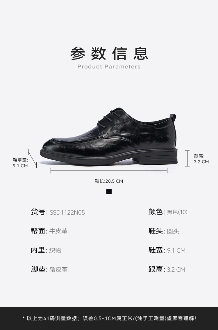 星期六男士极简风褶皱设计商务正装皮鞋SSD1122N05